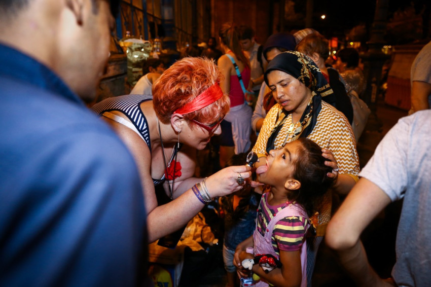 Amikor a katolikus fiatalok megérkeztek, már voltak ott civil segítők, akik a Migration Aid elnevezésű szervezethez kapcsolódva támogatják a menekülteket. Úgy tűnt, a leghatékonyabb segítség az alapvető orvosi ellátás – amit egy önkéntes doktornő biztosít – és az érkezők eligazítása a pályaudvarok között. A magyar hatóságoktól kapott magyar nyelvű dokumentumokat nem tudják értelmezni, hiszen a legtöbben a latin betűs ábécét sem ismerik. Még angol nyelvtudás birtokában sem egyértelmű számukra, melyik a városnév a magyar nyelven íródott dokumentumon, melyik táborba kell menniük, és hogyan jutnak oda. A vonatoknál a civil segítők felkészülten fogadták az érkezőket, ellátták őket vízzel, élelemmel, a Bicskére indulókat összehívták és átkísérték egy másik pályaudvarra, ahol fel tudtak szállni a vonatra. Nagyrészt az önkéntes segítőknek köszönhető, hogy a menekültek egyáltalán eljutnak a pályaudvarokra.