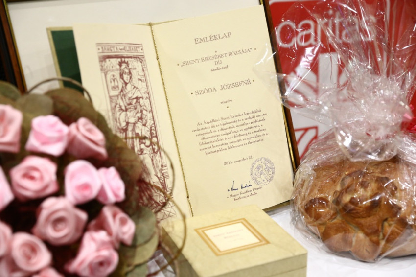 A köszöntők után adták át a Szent Erzsébet rózsája díjat. Az MKPK tizenhatodik alkalommal adományozta az elismerést, amelyre a testület tagjai idén Szóda Józsefnét választották ki Écsy Gábor, az Esztergom-Budapesti Főegyházmegyei Karitász vezetőjének ajánlása alapján.