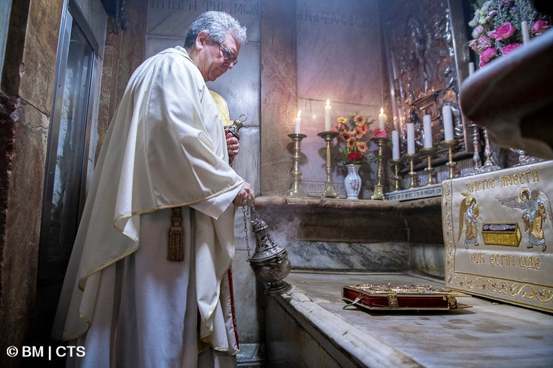 „A hely, ahol vagyunk, és a szövegek, amelyeket olvastunk, mind arról beszélnek, hogy Jézus valóban meghalt és valóban feltámadt – emelte ki a kusztos. – Ez a hely ezért a keresztény bizonyság és remény forrása. Ez a hely maga is tanú. Amint az angyalok hirdették az asszonyoknak Jézus feltámadását, az Egyház is felkínálja nekünk ezt az üzenetet, a hit és a remény szilárd alapját.”
