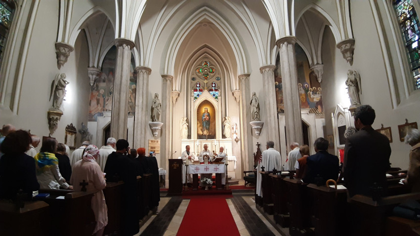Első budapesti programjuk a magyar lovagok székhelyén, a Hermina-kápolnában bemutatott szentmise volt, amelyet a nemzetközi részvételre való tekintettel latin nyelven celebrált Kránitz Mihály teológus, egyetemi tanár. Koncelebrált Christoph Lindner atya, a lovagrend Szent Olivérről nevezett hildesheimi kerületének perjele, valamint Romanus Kohl esperes. A szentmisét megelőzően Farkas Olivér, a helytartóság kancellárja ismertette a műemlék Hermina-kápolna történetét és a lovagrend magyarországi tevékenységét.