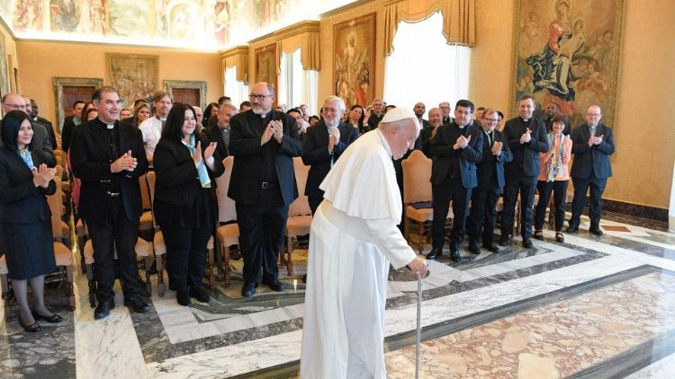 Ferenc pápa köszöntőjében emlékeztette a missziós férfi és női szerzeteseket arra, hogy a rendi lelkiségükről tartott konferenciájuk címe „Íme eljövök, hogy összegyűjtsek minden népet” (Iz 66,18), alapvető fontosságú üzenetet hordoz karizmájukkal kapcsolatban. Giovanni Battista Scalabrini olasz pap, aki az olasz emigránsok lelkipásztori gondozására alapította a rendet 1887-ben, arra tanította a szerzeteseket, hogy gondoskodjanak a rájuk bízottakról, tekintsék őket testvéreiknek az egység felé vezető úton, Jézus főpapi imájának szívből jövő szavai szerint (vö. Jn 17,20–23).