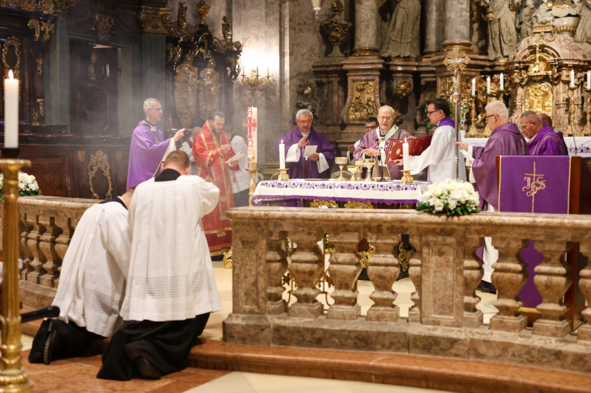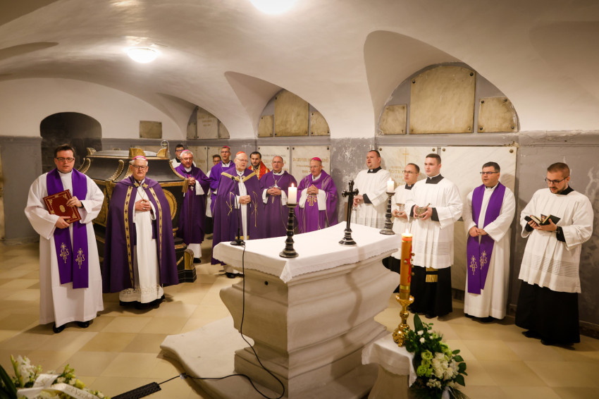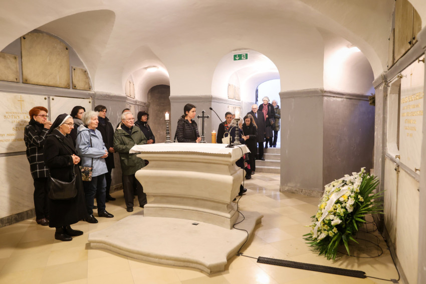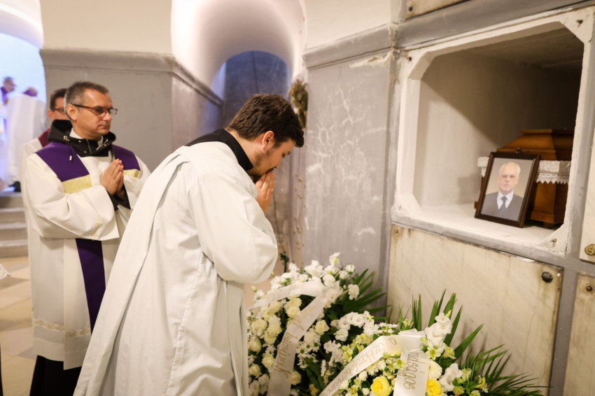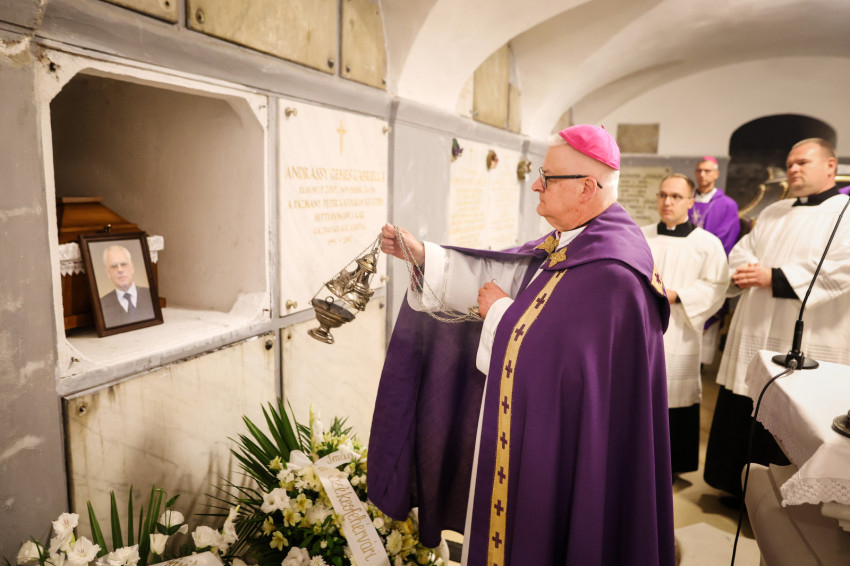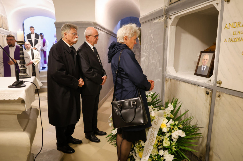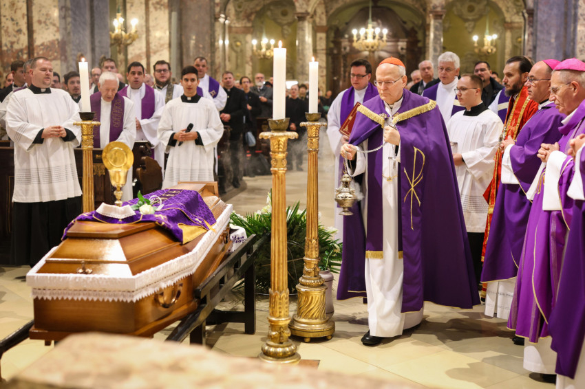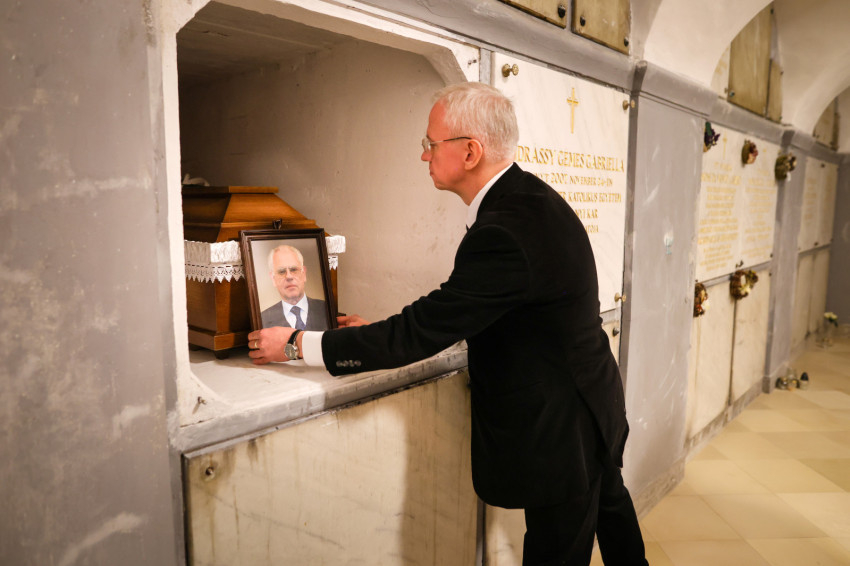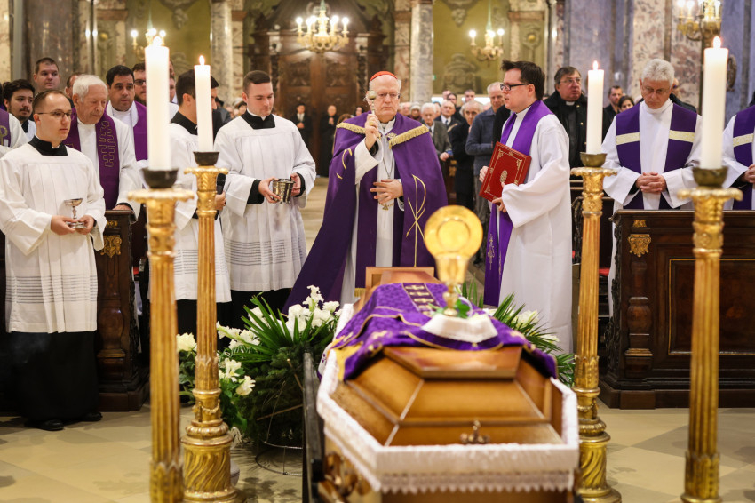 A koporsó beszentelése után a temetés az Egyetemi templom kriptájában folytatódott, ahol Spányi Antal székesfehérvári megyéspüspök vezette a szertartást, amelybe a kihangosítás segítségével a templomból kapcsolódhattak be a hívek, akik a szertartás után róhatták le kegyeletüket az elhunyt végső nyughelyénél.