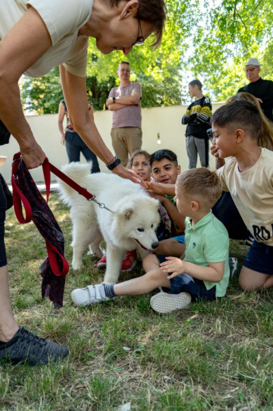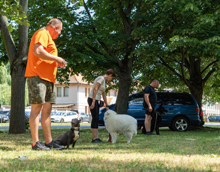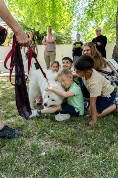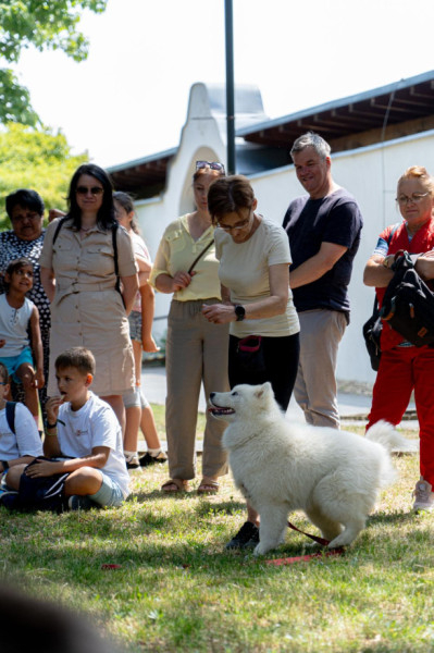 Sántha Dávid, az Alfa Dog Kutyaiskola kiképzője egy szamojéd, egy németjuhász, egy mini bullterrier és két gazdi segítségével bemutatta, mit tanulnak az ebek a kutyaiskolában. A bemutatón résztvevő kutyusok amellett, hogy elnyerték a nézők elismerését, sok-sok simogatást és ölelést is bezsebelhettek.