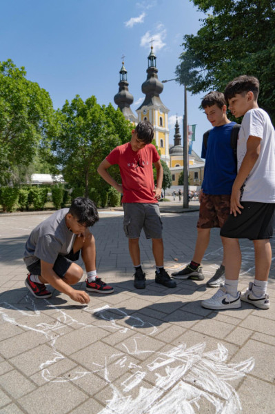 A délelőtti órákban kezdetét vette az aszfaltrajzverseny. A nevezők vakáció témában készítették el alkotásaikat; a legjobbakat a nap végén díjazták is.