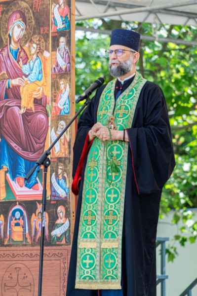 Kocsis Fülöp metropolita köszöntőjében felhívta a gyerekek figyelmét arra, hogy a keresztvetéssel a Szentháromság jelét rajzoljuk magunkra, hiszen három összetett ujjunk az Atyát, a Fiút és a Szentlelket jelképezi. A három isteni személy közül pünkösdkor a Szentlelket ünnepeltük. Amikor a Szentlélek leszállt az apostolokra, megváltoztak: bátrakká váltak, nyelveken kezdtek el szólni.