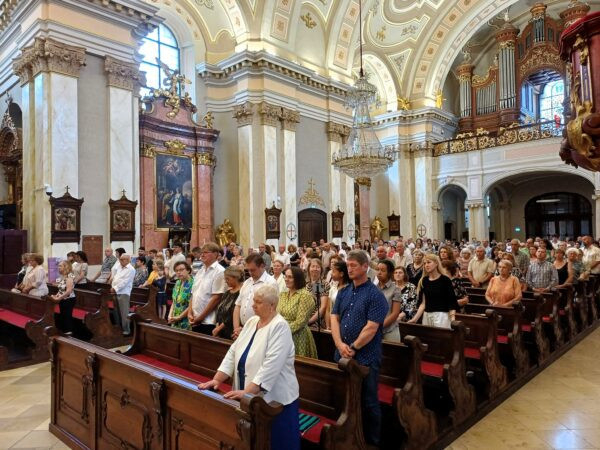 Toman Zoltán német nyelven mondott szentbeszédében leszögezte: Ez a nap megmutatja nekünk, hogy nem vagyunk egyedül az úton, Isten velünk van Lelke által.