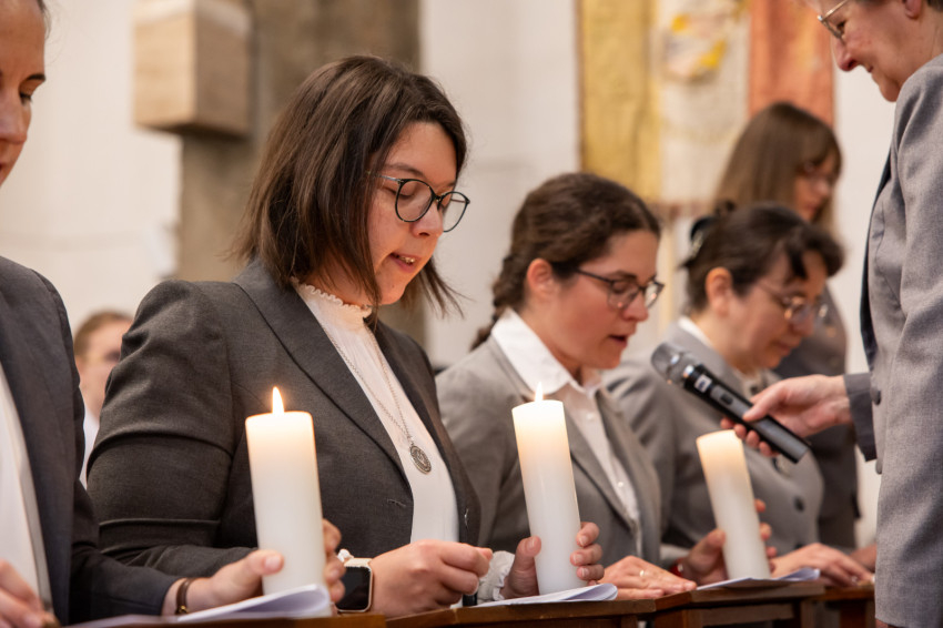 Németh Emma ezután egyenként néven szólította a fogadalmat újító testvéreket, Berki Bettinát, Földváry Katalint, Liliom Emesét, Márton Etelka Annát és Naményi Ildikót, akik közösen erősítették meg elköteleződésüket. A juniorok felelőse, Takács Anita SSS a húsvéti gyertyáról meggyújtva adta át nekik a fogadalmi gyertyákat, majd ők is aláírták az oltáron újabb egy évre vállalt elköteleződésüket.