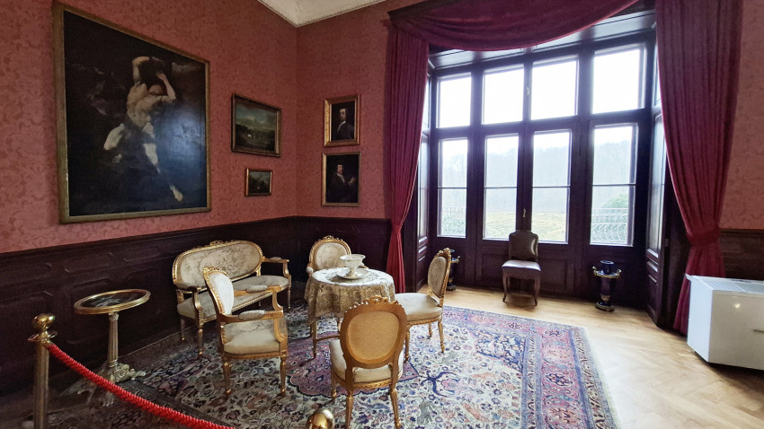 A nagyszalon egykor közösségi tér volt, bálokat, koncerteket és más jeles eseményeket tartottak itt. Az ablakokon kitekintve megpillanthatjuk az úgynevezett hímzéses partert, az épülethez szorosan kapcsolódó kertet. A bukszusok eredetileg legfeljebb tizenöt centiméter magasak voltak, idővel azonban megnőttek, s azóta labirintusnak nevezik az általuk alkotott kertrészt.