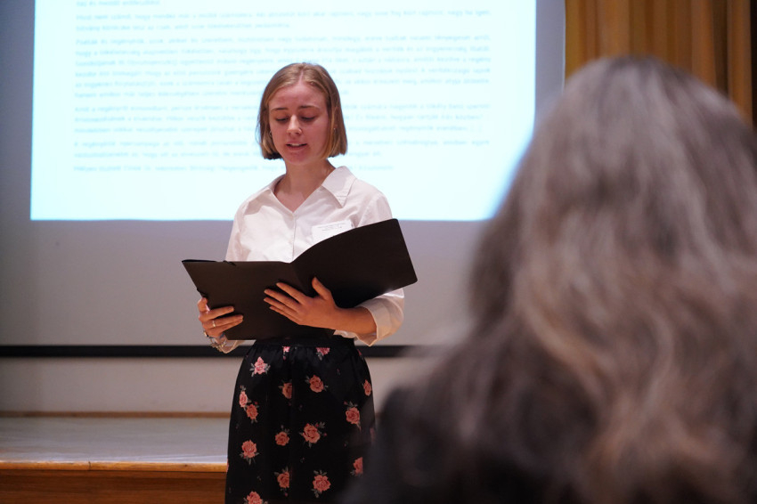 A verseny győztese Kónya Mercédesz, az ELTE Bölcsészettudományi Karának hallgatója lett, akinek felkészítő tanára Bóna Judit.