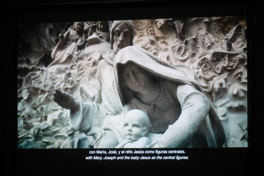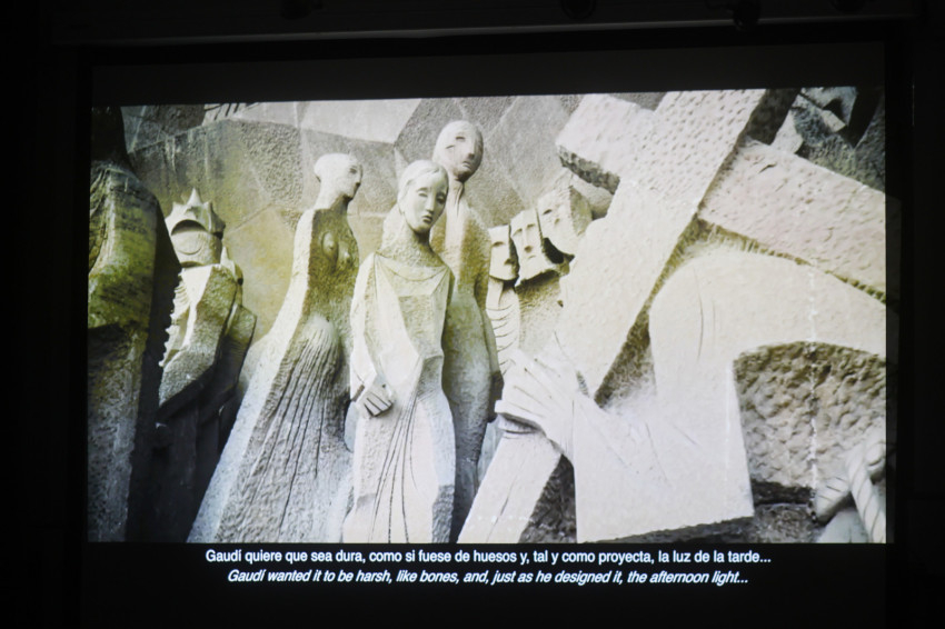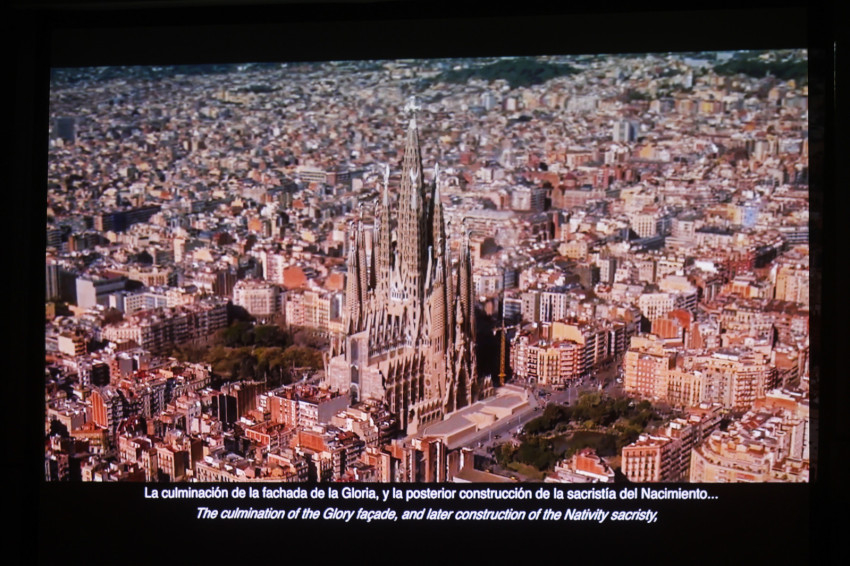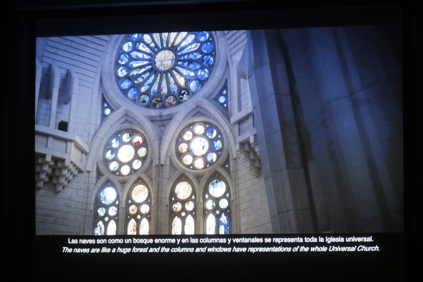 Mielőtt megkezdődött volna az előadás, megnézhettünk egy nyolcperces videót a Sagrada Famíliáról spanyol nyelven, angol felirattal, majd Armand atya kezdett beszélni a világszerte ismert, különleges templomról, amely 1882 óta folyamatosan épül. Antoni Gaudí tervezte, aki tudta, hogy a megbízója nem siet az építéssel – mondta Armand atya. Ez nyilván ritka dolog, hiszen tudjuk, hogy manapság milyen fontos a határidők betartása az építkezések folyamán. De egy katedrális sohasem épült meg rövid idő alatt, többször is előfordult, hogy az építkezés átnyúlt a következő évszázadra. A katalán építész világszerte az organikus építészet egyik legjelentőseb alakja. Gaudí hívő ember volt, Istent dicsőítette, azt vallotta, hogy: „a szépség lelkesít” – hallhattuk az előadótól.