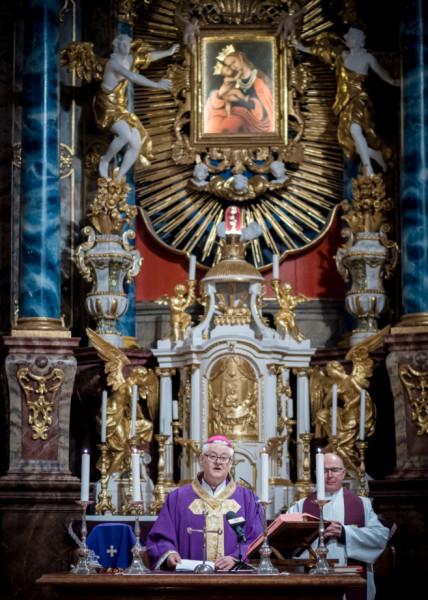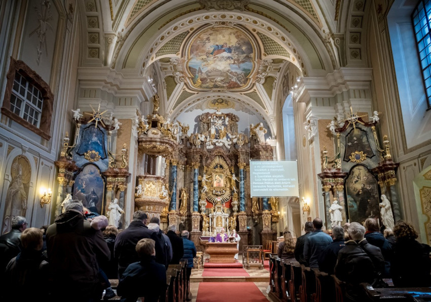A főpásztor a szentmise keretében imádkozott a családokért, és külön áldásban részesítette a zarándoklaton részt vevő házaspárokat.