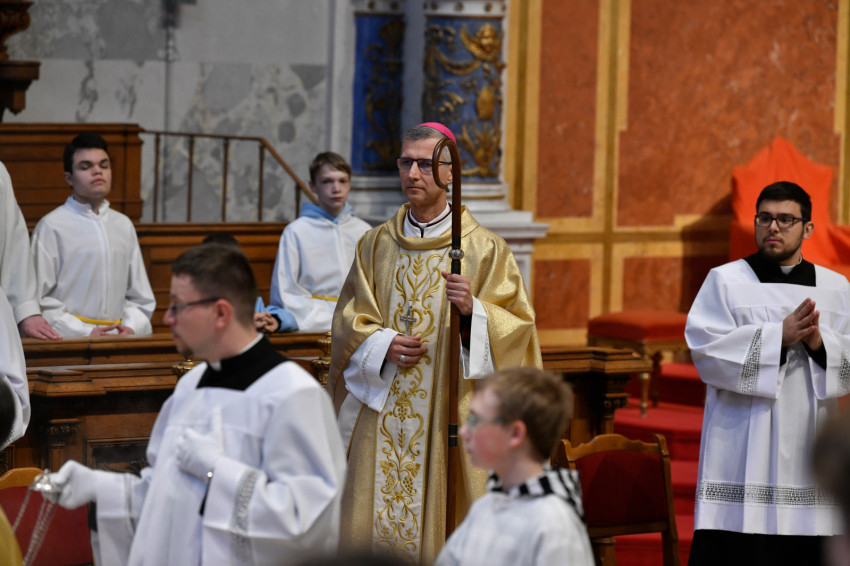 Az utolsó vacsorán Jézus szándéka és szeretete – fogalmazott a püspök – megingathatatlan, „szinte megdöbbentő, mint egy hegy”, miközben a tanítványokban kétkedés és váltakozó érzelmek vannak jelen. Ebbe a misztériumba hív meg bennünket is, amikor arra kérjük, hogy beléphessünk az ő húsvétjának titkába, és el tudjuk fogadni az ő szeretetét. Az életünk döntésein keresztül is arra hív, hogy egyre mélyebben értsük meg és egyre valóságosabban kapcsolódjunk hozzá.