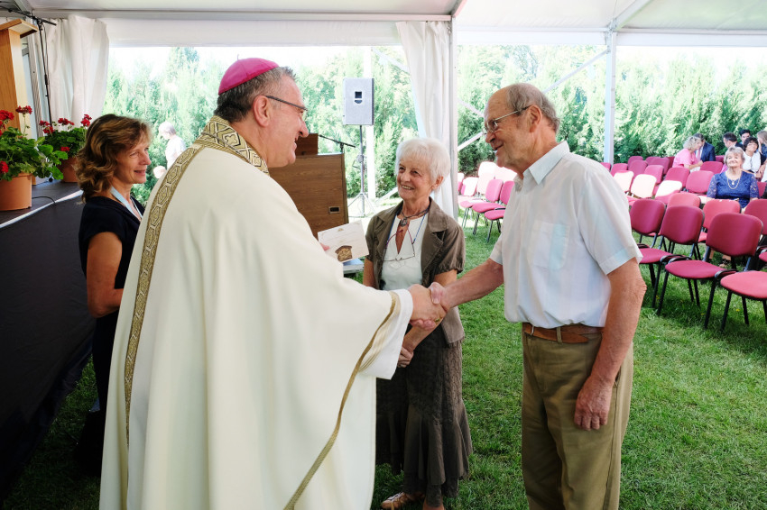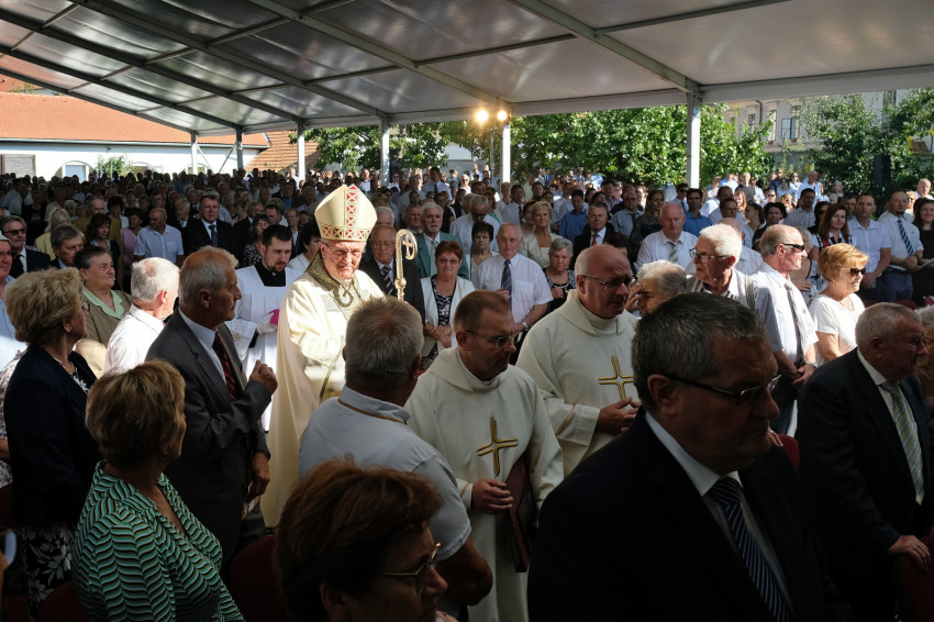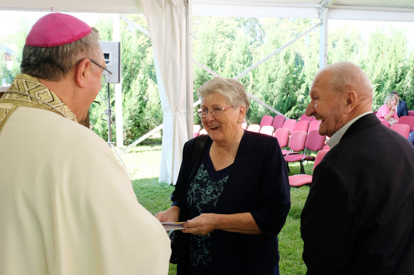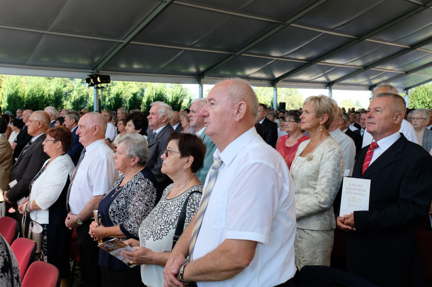 Már jóval a szentmise kezdete előtt megtelt a Püspökvár kertjében felállított hatalmas sátor, aminél nagyobbat már szinte nem is lehetne elhelyezni ott. Veres András megyéspüspök kezdeményezésére már hetedszer gyűltek össze a házaspárok, akik kerek évfordulójukat ünneplik idén. Volt öt 60. évfordulót, sőt egy 65. évfordulót ünneplő pár is.