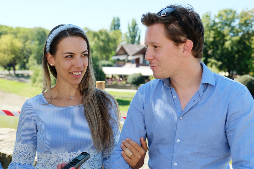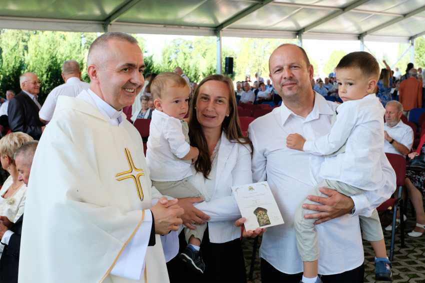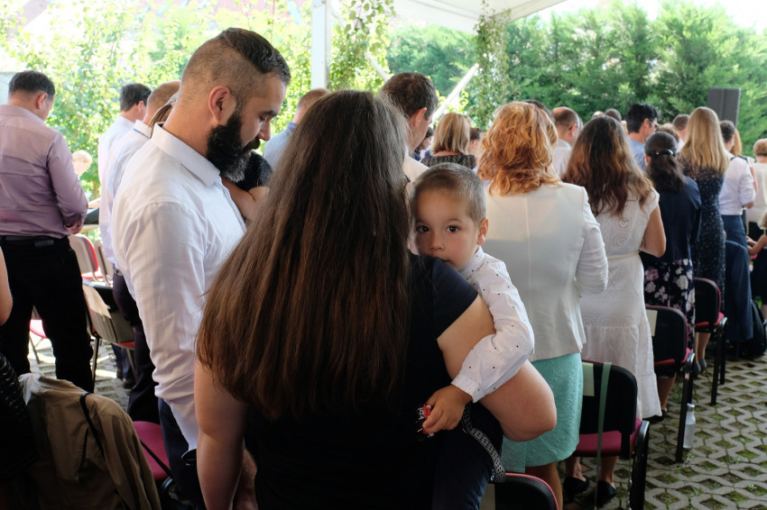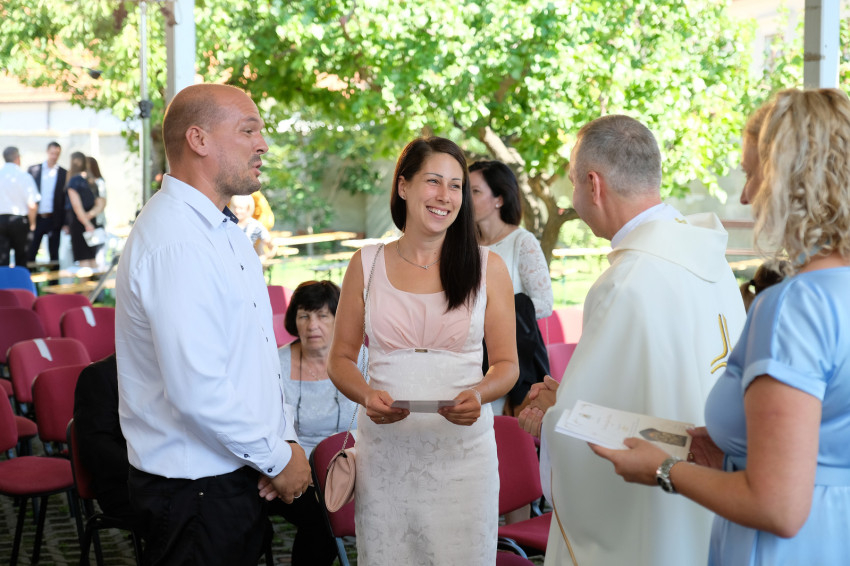 Wangler Sebestyén és Oroszi Julianna Sopronból érkeztek két gyönyörű kisgyerekkel, öt éve házasok, először vannak a jubiláns házasokat ünneplő szentmisén. Fák árnyékában, a várfal mellett telepedtek meg, mert a kicsik az utat végigaludták, így sejteni lehetett, hogy itt szaladgálni kell majd utánuk. „Kisgyerekekkel nehéz, de eljöttünk egymás miatt is, mert tudtuk, hogy ez idő alatt is egymásra tudunk hangolódni.” „Ez most nekünk családi program, nem párkapcsolati. Még emésztjük, hogy átalakultunk apává, anyává” – teszi hozzá Sebestyén.