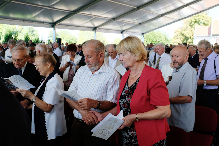 Az egyházmegyéből 453 jubileumot ünneplő házaspár regisztrált az ünnepre, ők névre szóló helyet kaptak, és egy kis füzetet, amiben az énekek, az imádságok és a szentírási részek mind benne voltak. Családtagjaik és azok, akik nem regisztráltak, de szerettek volna részt venni az eseményen, a sátoron kívül kaptak helyet. Hogy tiszta lélekkel vehessenek részt a szentmisén, a Püspökvár kertjében lehetőség volt szentgyónásra.