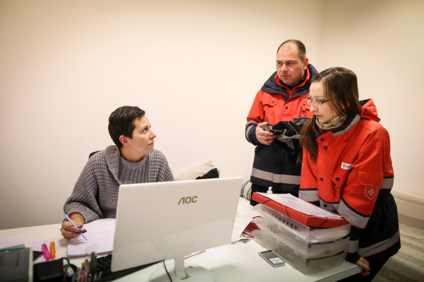 Autóba ülünk, és az M7-es bevezető szakaszához, a korábbi Bécs szálloda épülete mögött, a Rimaszombat utcában levő nappali melegedőbe megyünk, amely most tizenöt fős éjszakai menedék is. Itt azonban épphogy csak körülnézünk, aztán a vezetővel, Biró Péterrel és Emíliával már indulunk is a közelben álló épületbe, amely régebben kollégiumnak adott otthont, de már jó ideje üresen áll, és halljában a máltai szeretetszolgálat három éve krízisszállót üzemeltet a téli hónapokban. – Elvileg nyolcvan férőhelyes, de valamelyik este százheten aludtak benne – tudjuk meg Pétertől.