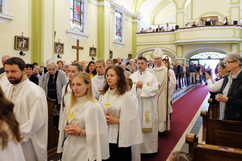Ezt követően vonultak be a hívek a templomba, ahol a szentmise elején Erdődi Ferenc plébániai kormányzó köszöntötte a püspököt, az adományozókat, Horváth Tamást, a kerület polgármesterét és az egybegyűlt híveket.