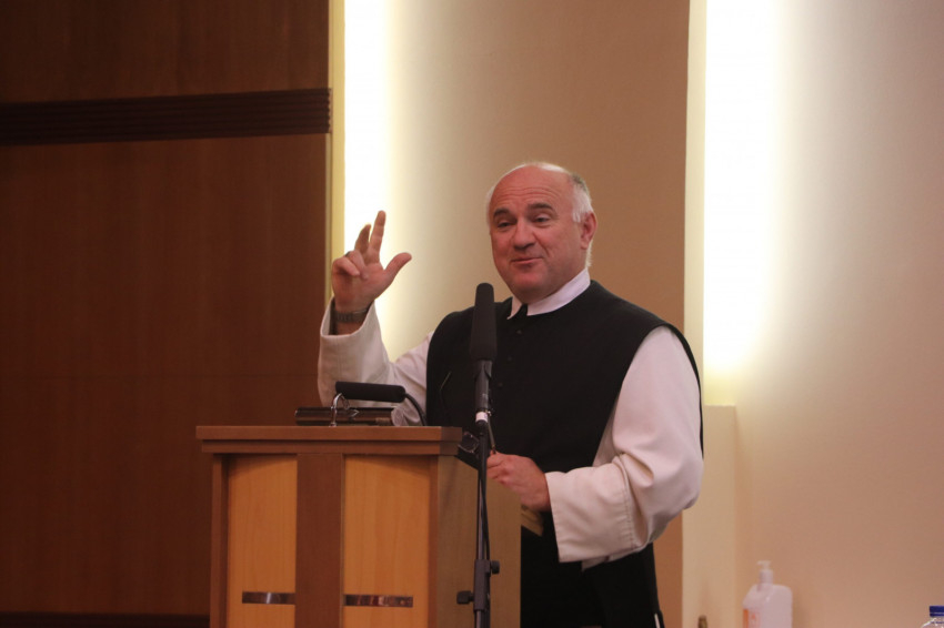 Sixtus atya anekdotákkal és humorral fűszerezett előadásában kitért a jézusi pedagógia fontosságára, bibliai szempontokat és krisztusi alapokat nyújtva a hallgatóságnak. Zárszóként Saint Thierry-i Vilmos ciszterci lelkiségi író gondolatát kapták ajándékba a jelenlévők, ami a tanév mottója is lehet: „A szeretet tanulható és tanítható.”