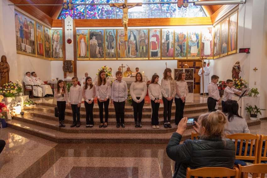 A szentmise befejező áldása előtt adták át a karitászdíjakat, majd a Kárpátaljáról érkezett gyermekek, szívhezszóló műsorral kedveskedtek a jelenlévőknek. A műsorhoz kapcsolódóan Szkoropádszky Péter atya osztotta meg gondolatait a hívekkel.