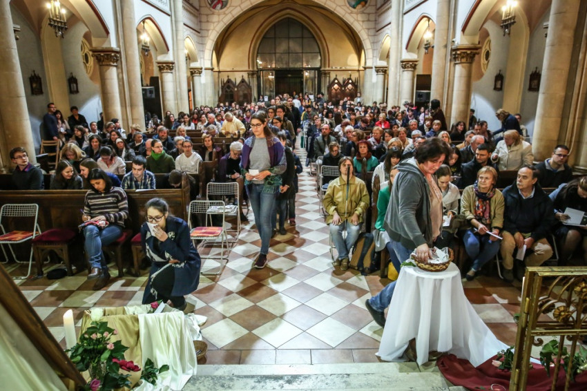 Idén két egymást követő napon, szeptember 29-én és 30-án is megtartottuk a Rózsaeső imaestet az Örökimádás-templomban. A kicsinek éppen nem mondható templomtér kétszer is teljesen megtelt. Miért az elnevezés: Rózsaeső imaest? Nem sokkal halála előtt Teréz így vigasztalta nővértársait: „Mennyországomat azzal fogom tölteni, hogy jót teszek a földön… meglátjátok, olyan lesz, mint egy rózsaeső.”