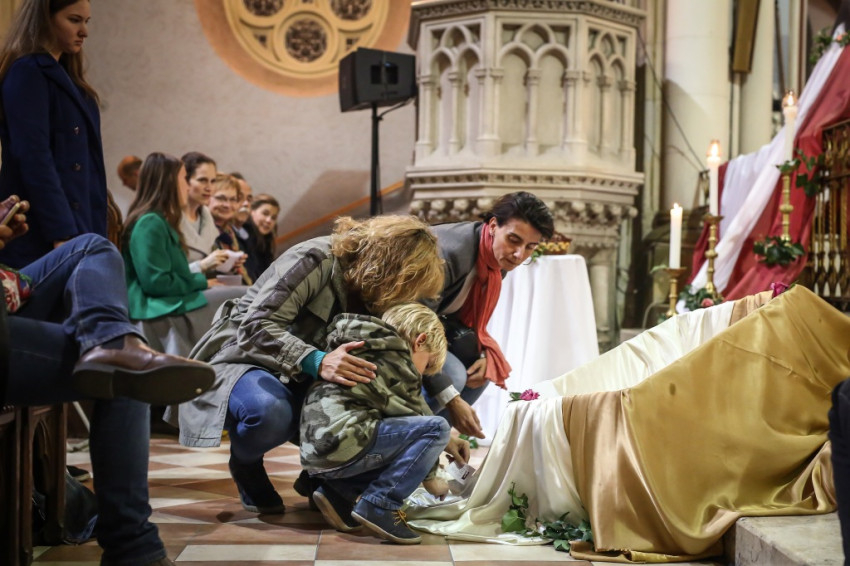 Idén az Örökimádás-templomban Nagy Bálint jezsuita volt a szombati ünnepi szentmise főcelebránsa, az imaesteken pedig Versegi Beáta Mária nővér tartott előadást arról, miként élte Teréz a „szeretet tudományát”. A hegedűs hasonlatával élve úgy fogalmazhatunk: Teréz is „négy húron tudott játszani”, a szeretet valamennyi húrján. E négy húr a jegyesi, az anyai, a gyermeki és a testvéri szereteté. Ezek a képességek valamennyi emberi szív sajátjai, élethelyzettől és életállapottól függetlenül. Ám amint a hangszer húrjait is naponta fel kell hangolni ahhoz, hogy harmonikus dallamok szülessenek, ugyanígy kell tenni a szeretet húrjaival is.