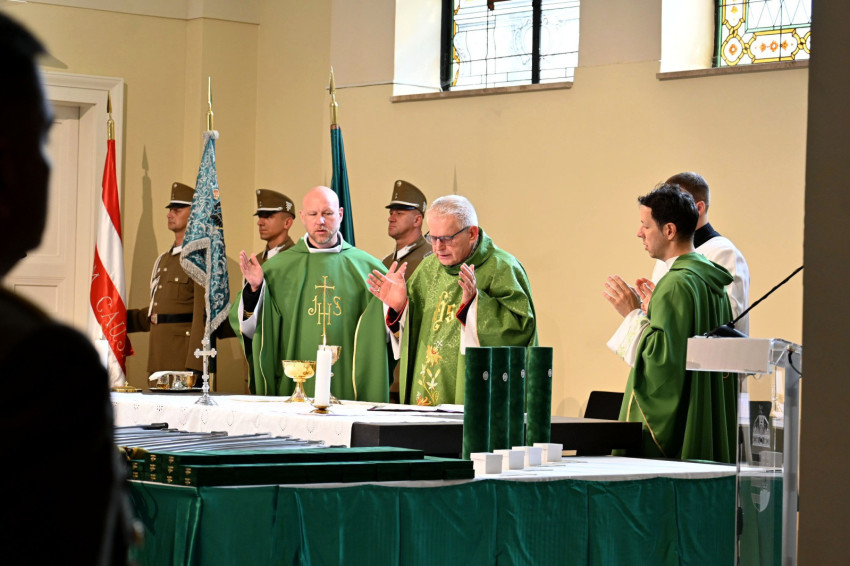 A szentmisét Berta Tibor dandártábornok, katolikus tábori püspök celebrálta. „A szeretet sajátságos bajtársiasság, amely meghatározó lesz az eljövendő katonai feladatok végrehajtásában. Ez a szeretet érvényesül akkor, amikor szolgálatukat pontos lelkiismeretességgel, áldozatkészen és állhatatosan látják el, amely alapja a haza iránti hűségnek és a Magyar Honvédség iránti becsületes és őszinte elkötelezettségnek.