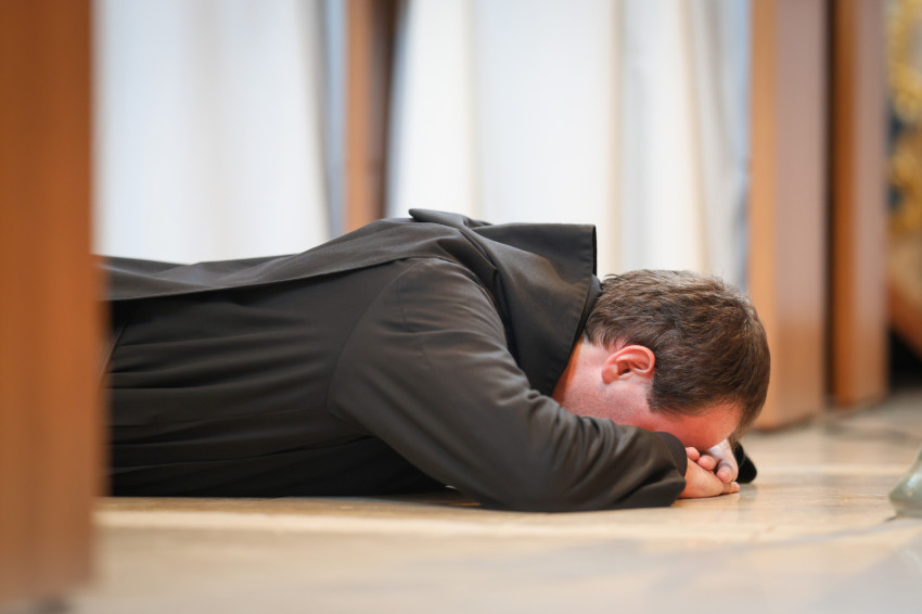 Ignác letérdelt a főapát elé, aki elmondta felette a felszentelő imádságot.