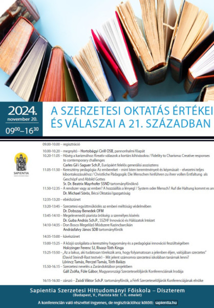 16:15–16:30 – zárszó: Zsódi Viktor Sch.P. tartományfőnök, a Férfi Szerzetes-elöljárók Konferenciájának elnöke