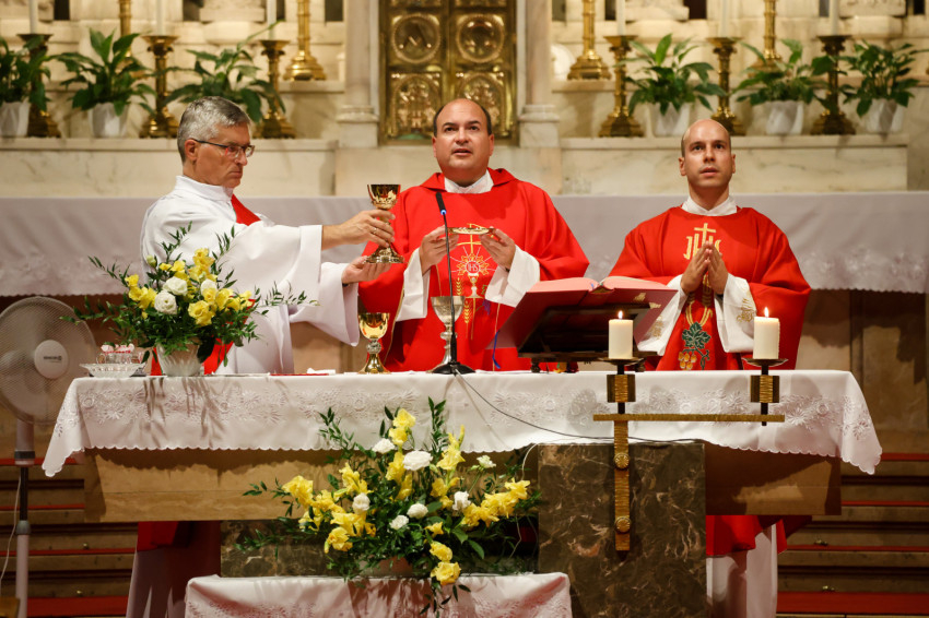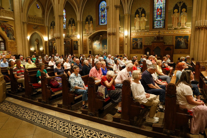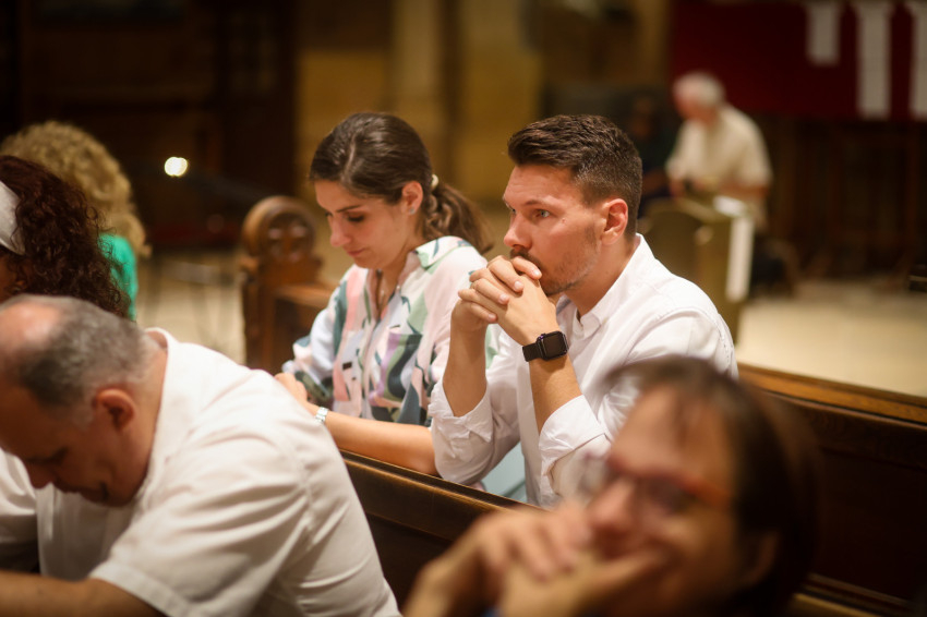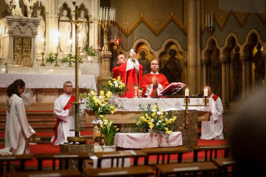 Az elmélkedést ezúttal is koncelebrált szentmise vezette be, amelyet Monostori László esperes, a Szent Margit-templom plébánosa, az Esztergomi Hittudományi Főiskola morálteológia-tanára mutatott be.