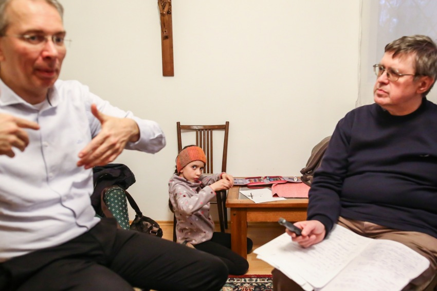 M. Zs.: Képeket hordozunk magunkban, különböző mintákat, szüleinktől, a társadalomból, innen-onnan. Ezek a minták nagyon erősek, és nem a szeretetet erősítik. Nem bántom a szüleimet, de mi otthon nem beszéltünk arról, hogy miként kell szeretni. Ha megkérdeznénk Blankát (Meskó Zsolt nyolcéves kislánya, aki a beszélgetés közben egy nagyon szép rajzot készített Jézus virágvasárnapi bevonulásáról – B. D.), akkor elmondhatná, otthon sokat beszélgetünk arról, hogyan kell szeretni az iskolában, valakit, aki bánt engem, vagy akit a többiek kirekesztenek, vagy a szülőket, eltűnődni azon, mi az, hogy harag. Ezzel ellentétben mi a vasárnapi kereszténységben nőttünk fel, ami ugyanúgy ránk ragadt, mint a polgári neveltetés. Ezért – legalábbis nekem – nehéz volt megélnem a passió valódi mélységét. Felnőtt fejjel keresem, mit jelent a szeretet, mit akar az egóm, és ezzel szemben mit a bennem lakó Isten, akit én követni szeretnék. Ez egy hosszú tanulási folyamat. A régi képeket, amiket a gyűlöletről, a haragról, a sértésekről tanultunk, le kell cserélnünk olyan képekre, melyekben a krisztusi minták vannak. Nem azt várom, hogy hozzám forduljanak és engem tegyenek boldoggá, hanem hogy én forduljak oda a másikhoz, és kérdezzem meg: Hogy vagy? Őszintén, nem pedig megszokásból, rutinból. Valahol itt kezdődik a jézusi evangelizáció. Majdnem ötven évembe tellett az, míg eljutottam idáig. Addig én szerettem volna mindig elmondani, hogy mennyi bajom van, és féltem, hogy a kérdezett fél valóban beszélni fog a gondjairól.