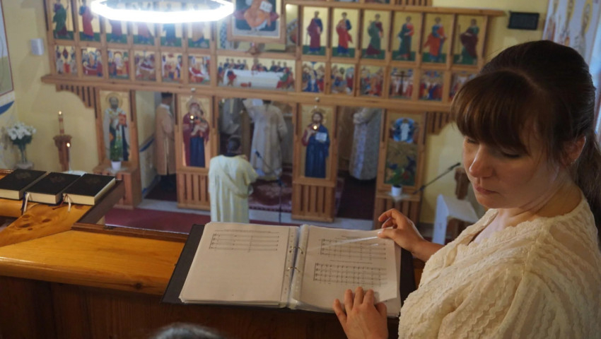 A liturgia ünnepélyességéhez az idei templombúcsún is nagyban hozzájárult a Keresztelő Szent János kórus éneke. A liturgián Kökényessy Zoltán vezényelt, aki a zenét írta, és sokat gyakorolt az énekesekkel együtt.