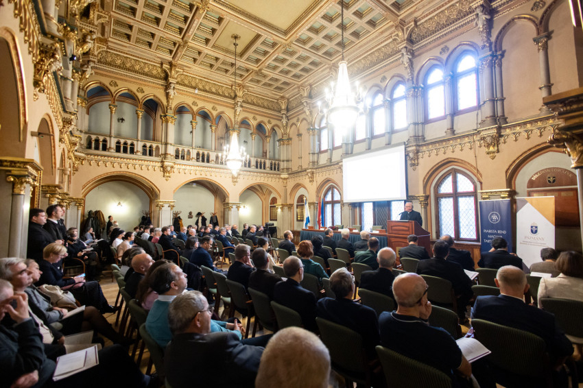 „Ma különféle reform és haladó pedagógiával találkozhatunk, melyek láthatóan nem termik meg a nevelés igazi gyümölcseit. Mint ahogyan azt Szentmártoni Mihály SJ pszichológus megírta a hetvenes években, a nyugati társadalom kétharmada érzelmileg kiegyensúlyozatlan, erkölcsileg kiskorú és vallásilag primitív. A helyzet azóta romlott” – kezdte köszöntőjét Kuminetz Géza, a PPKE rektora.