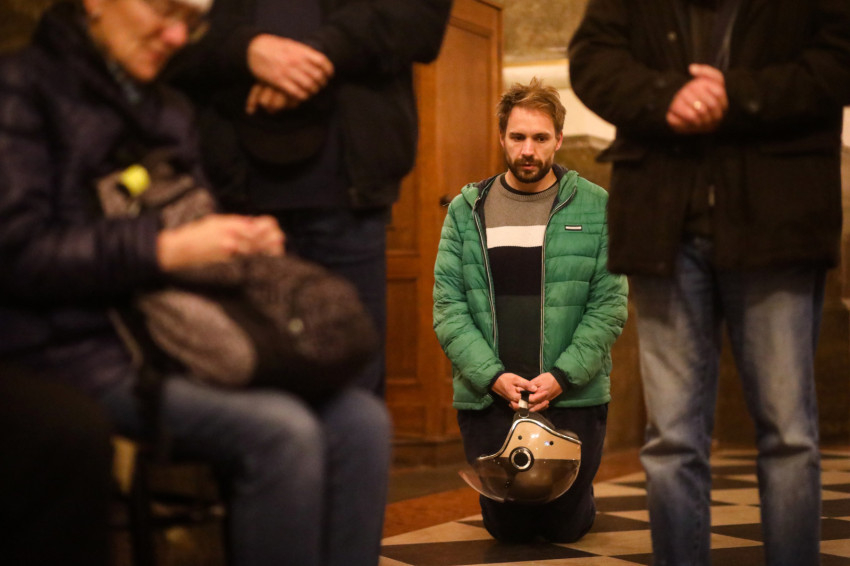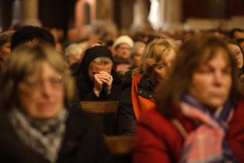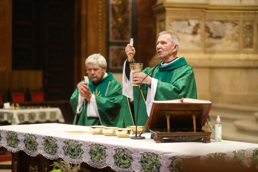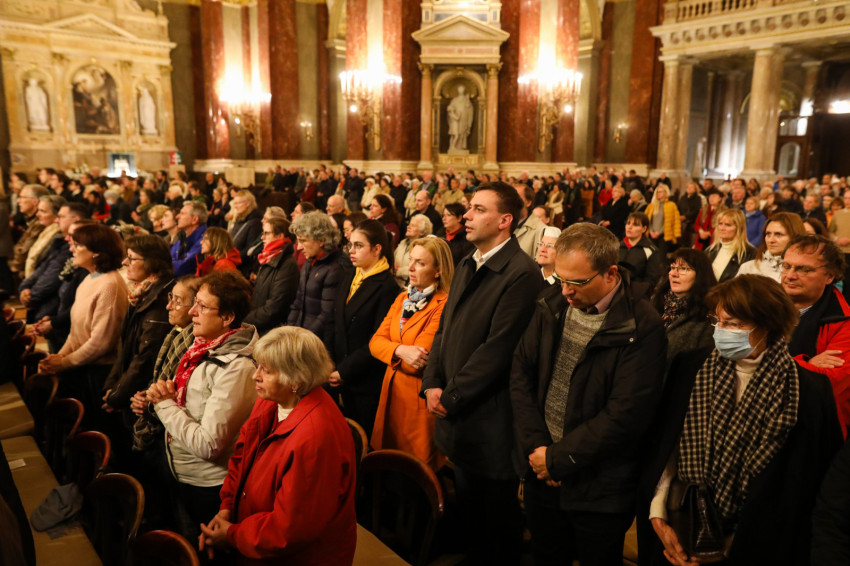 A szentmise záró áldását követően Mohos Gábor segédpüspök, a bazilika plébánosa vezetésével rózsafüzért imádkoztak a hívek a béke ajándékáért.