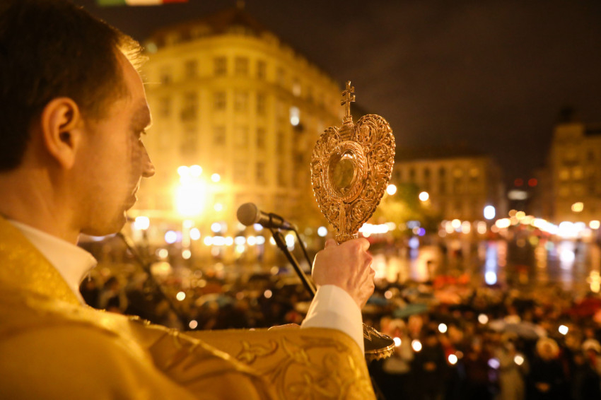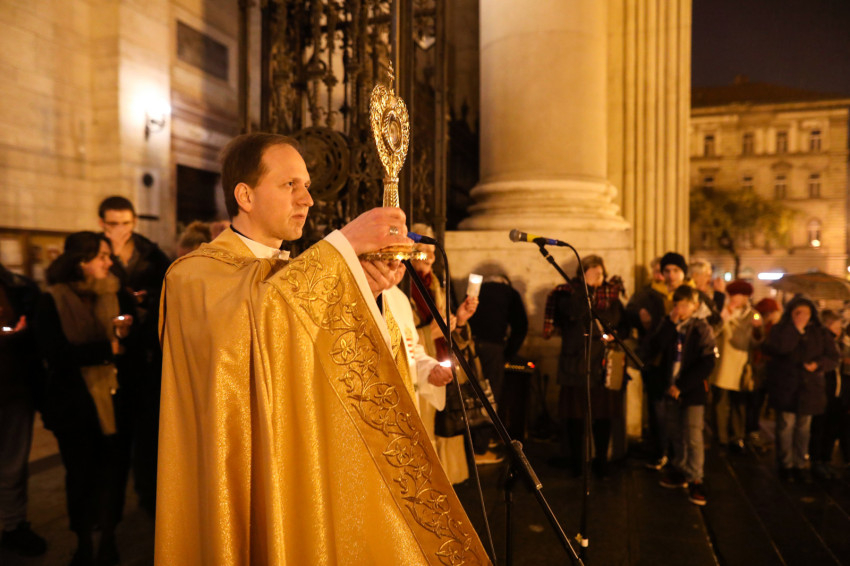 A rózsafüzér imádságot követően a bazilika főbejáratánál Mohos Gábor segédpüspök a hívek gyertyafényes menetét vezetve, Szent Imre herceg ereklyéjét felmutatva, a magyar ifjúság védőszentjének oltalmába helyezte hazánk, s különösen a fiatalok jövőjét; végül megáldotta a fővárost és az egész országot.