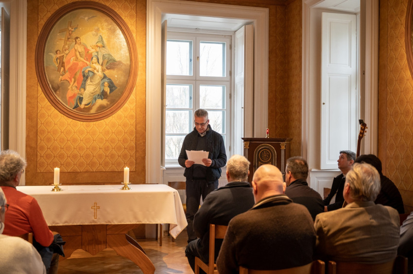 Szentségimádást követően az Apostolok cselekedeteinek egy szakaszához kapcsolódó elmélkedéssel és egy tanúságtétellel kezdődött a program a felújított volt bencés kolostor kápolnájában.