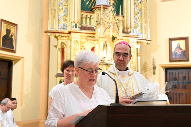 A szentmise végén elköszöntek a nyugdíjba vonuló Salamon Viktóriától. A főpásztor és Pontyos Ildikó hitoktatási referens megköszönték kitartó, áldozatos munkáját. Salamon Viktória segített megszervezni az egyházmegyében a hittan oktatását a kilencvenes évek elején, sok évtizeden át vezette a hitoktatási irodát. Bárki fordulhatott hozzá bármilyen kérdéssel-kéréssel, mindig segítőkész, odaadó, megbízható vezetője volt a hittanároknak.
