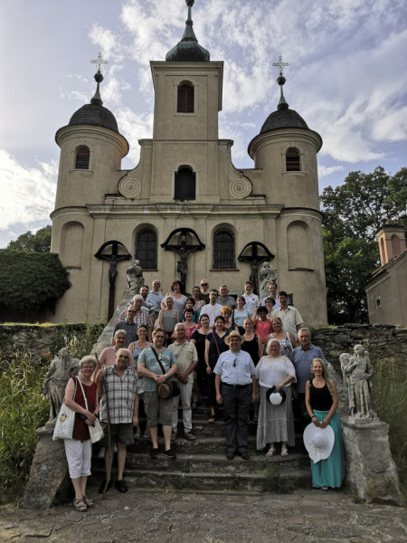 A szentmisét követően a kőszegi kálvárián felsétálva a Kálvária-templomhoz és a Trianoni kereszthez kirándultak. A templom múltjáról és jelenéről Kamper László grafikusművész tartott rövid előadást.