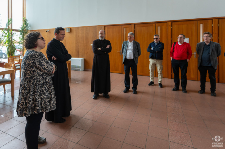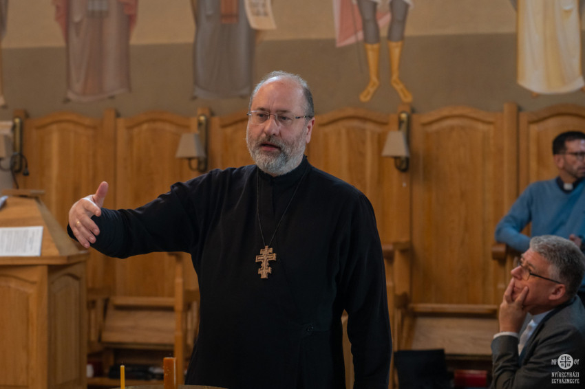 A program a Szent Atanáz Görögkatolikus Hittudományi Főiskolán folytatódott. A magyarországi görögkatolikus papképzés és teológiai oktatás központjában Galambvári Péter megbízott rektor tájékoztatta a vendégeket az intézmény múltjáról és mindennapjairól.