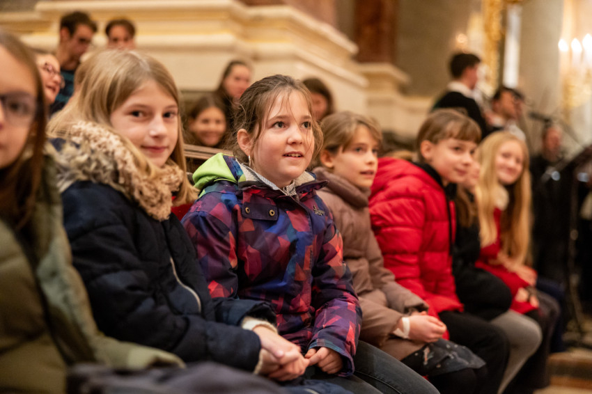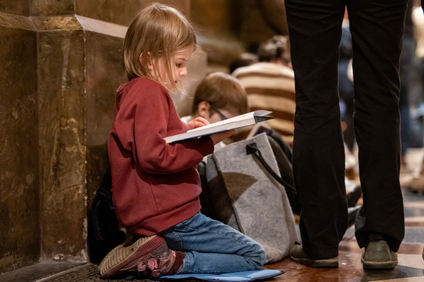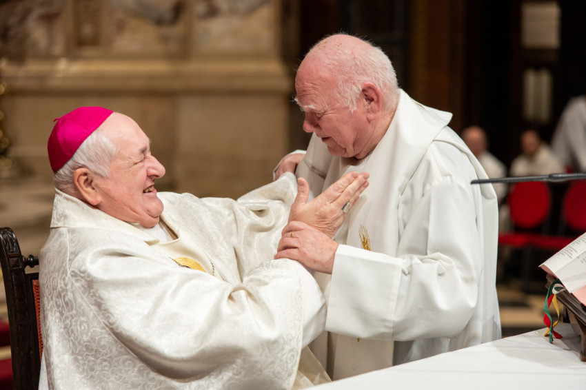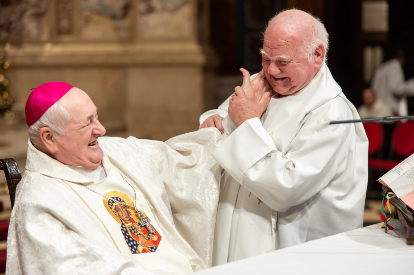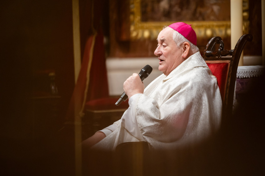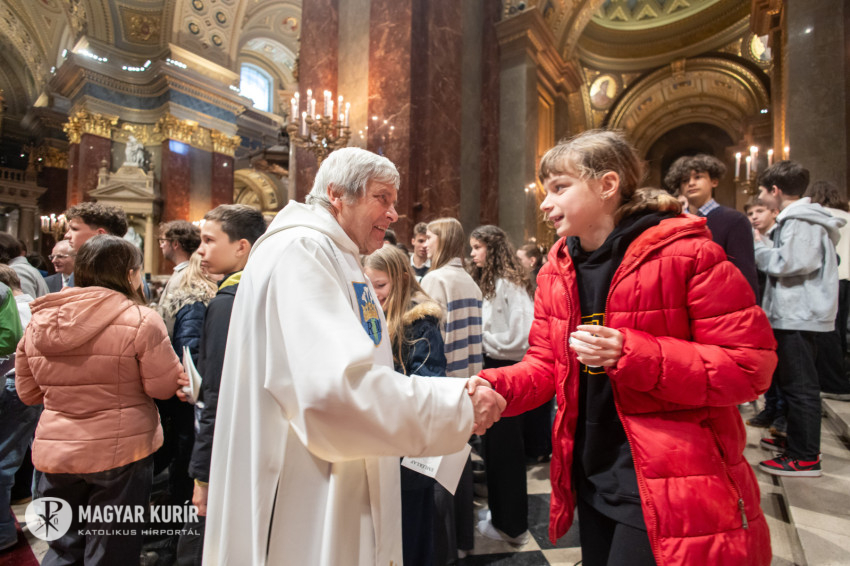 „Azt hittem, hogy a regnumiak is velem együtt öregszenek, de örömteli csalódás van bennem, mert látom, hogy a Regnum fiatalodik. Látjátok, én öreg vagyok, van két botom is – a rendes püspöknek egy botja van, nekem kettő is –, ilyen gazdag vagyok. Örömmel köszöntelek benneteket – szólította meg a gyerekeket Bíró László püspök, aki egészségi állapota miatt ülve misézett.
