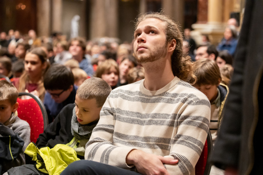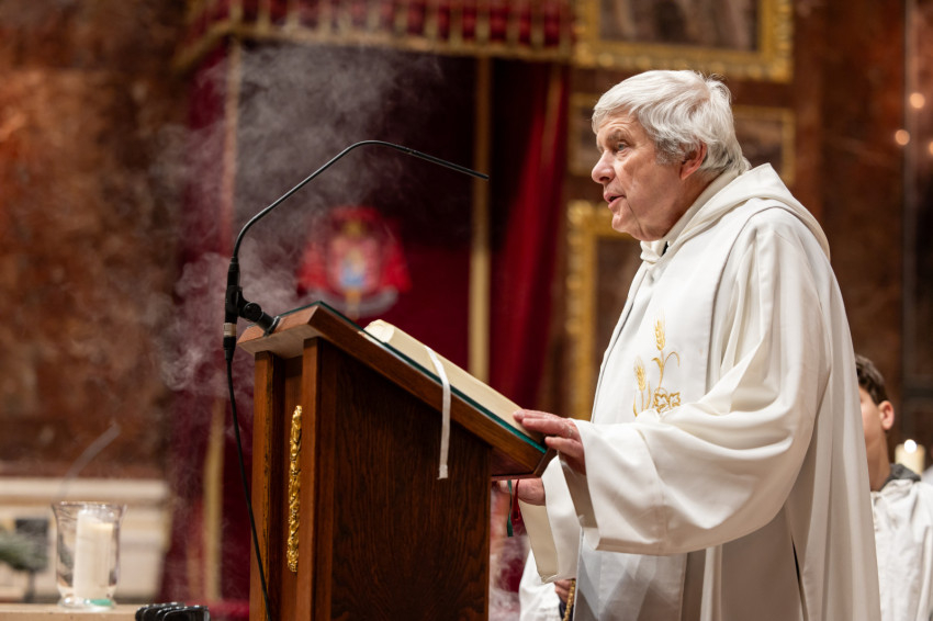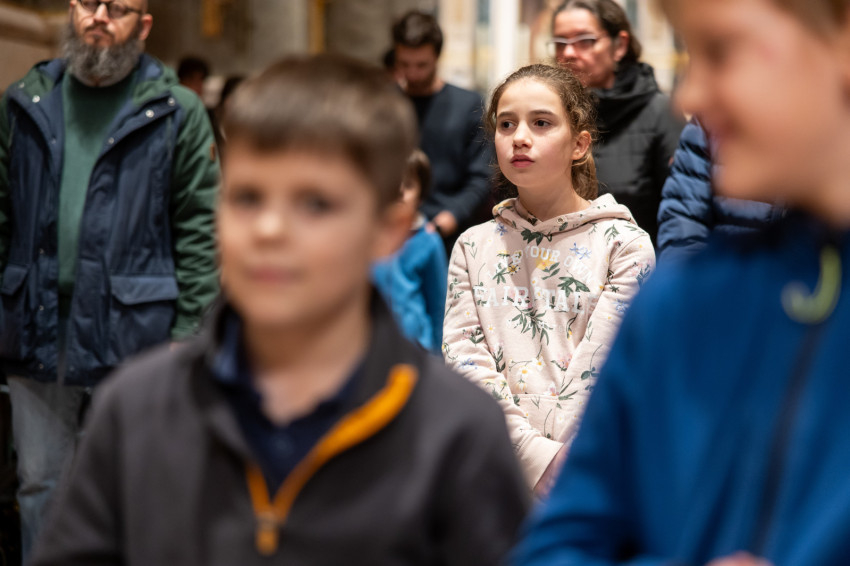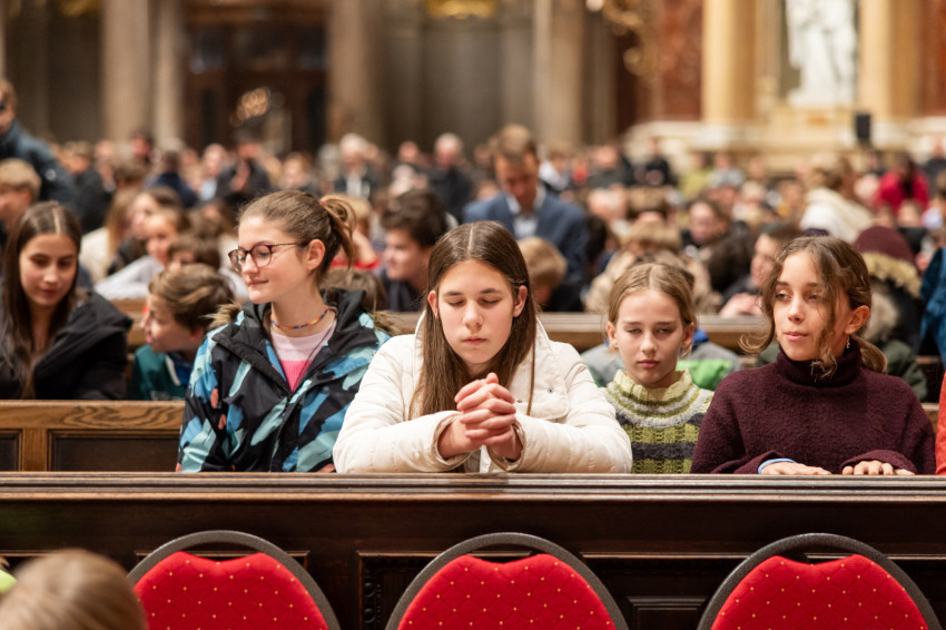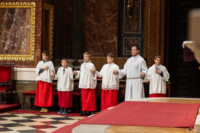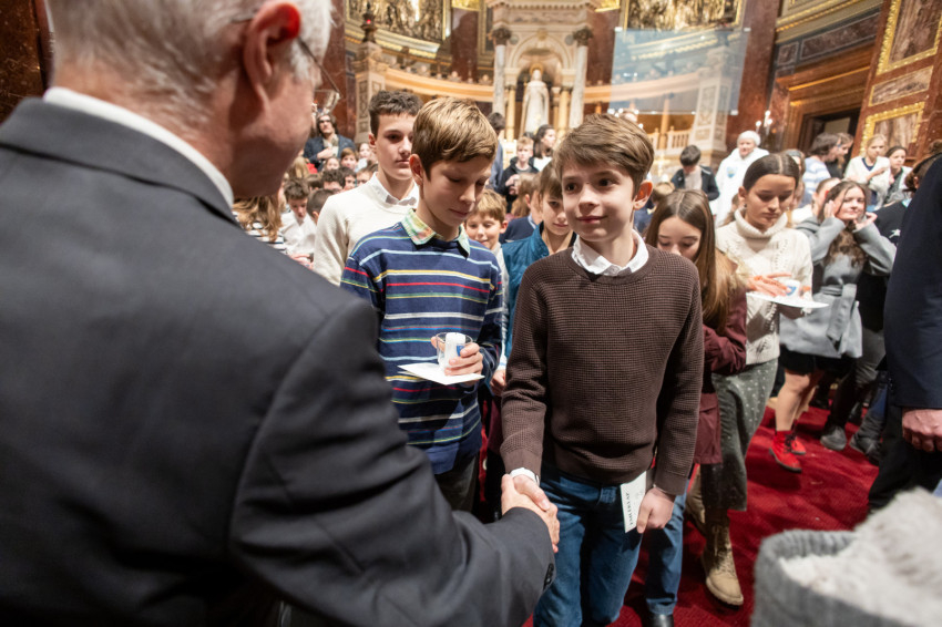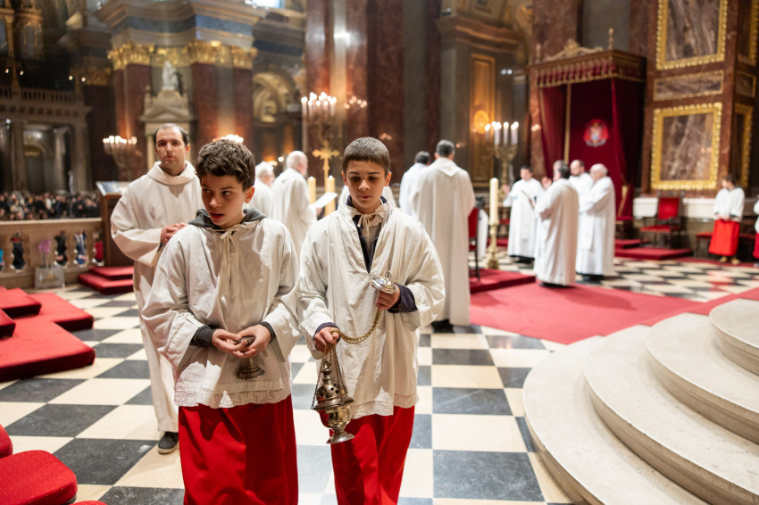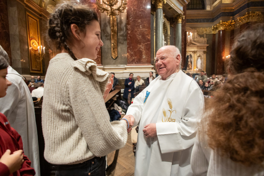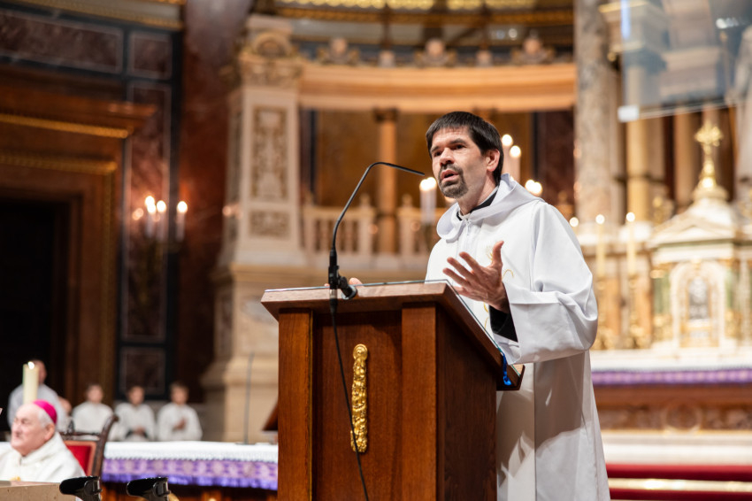 Az ünnepi szentmisére való bevonulás után a Regnum házfőnöke, Horváth István köszöntötte a koncelebráló, meghívott és regnumi atyákat, valamint az ország számos pontjáról érkezett gyerekeket, fiatalokat és vezetőiket, családtagjaikat, akik teljesen megtöltötték a bazilika hatalmas épületét.