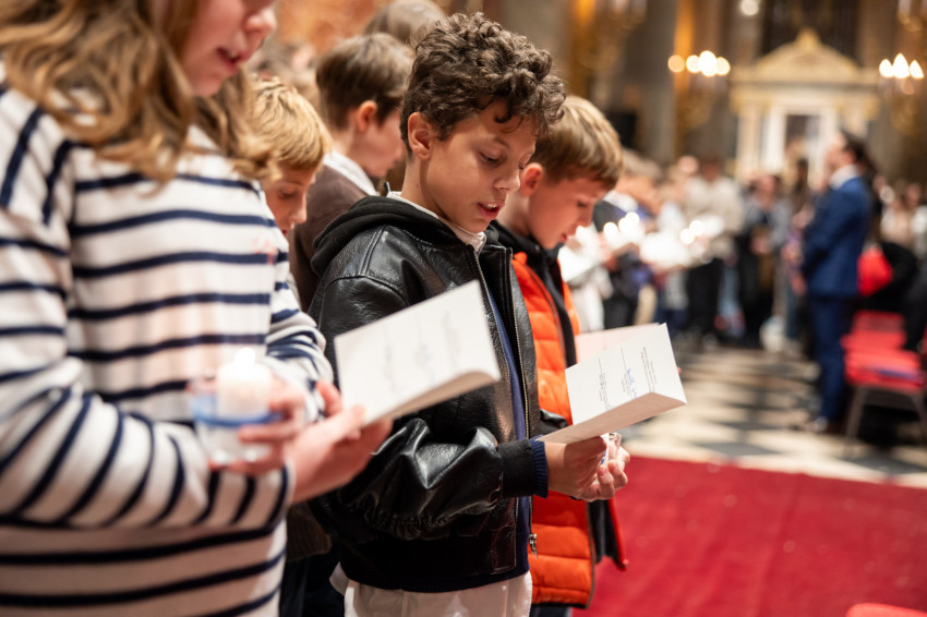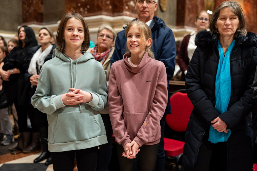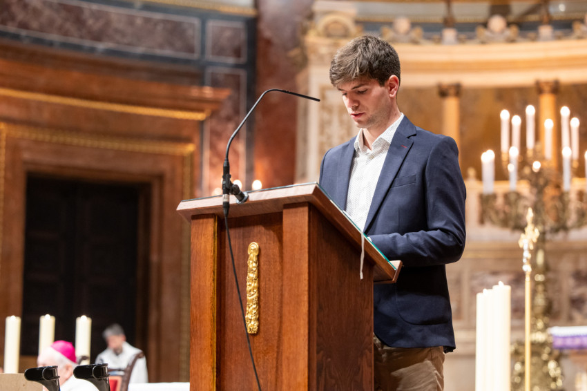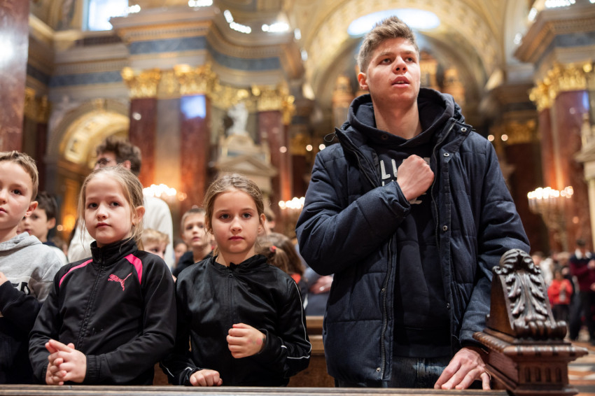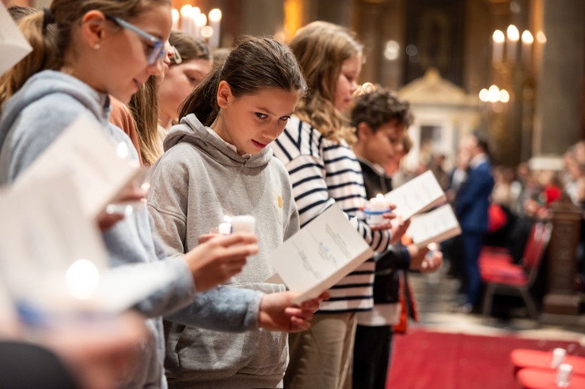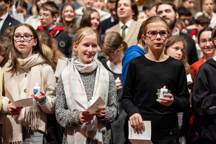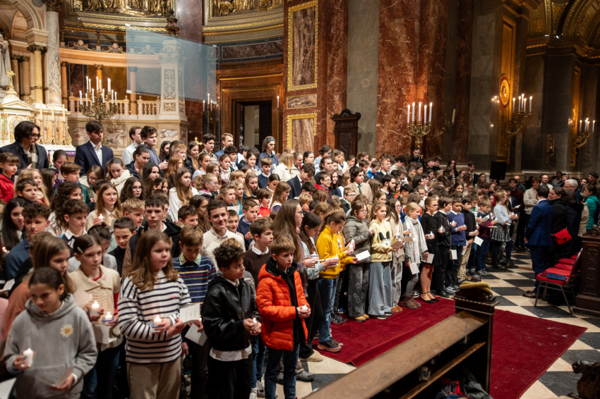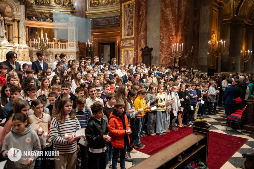 A szentbeszéd után a közösségben először fogadalmat tevő fiatalok a szentély lépcsőin sorakoztak fel, és a hívekkel együtt imádkozták el a hitvallást, a keresztségkor már kimondott „igen” megerősítéseként.
