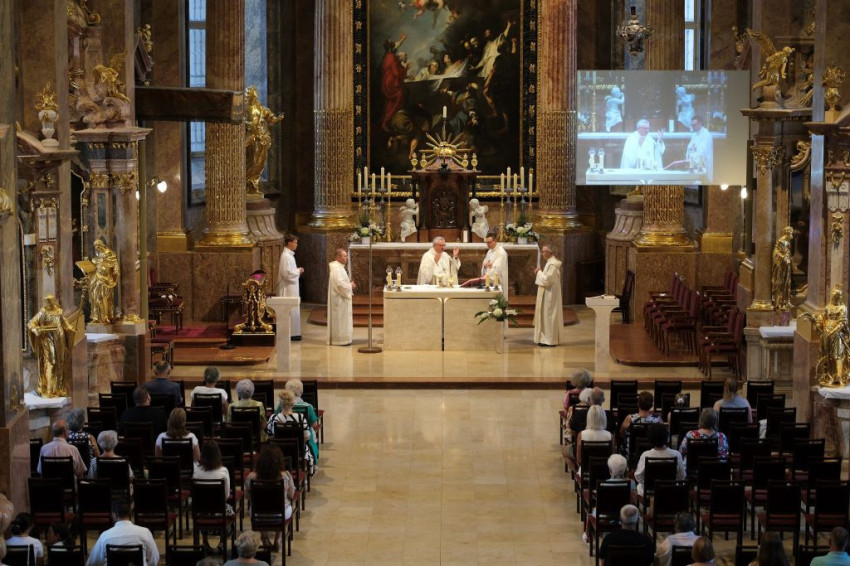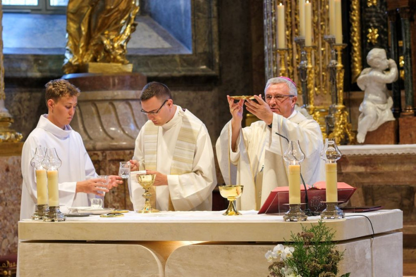 Mennybevételével teljesült a Szűzanya örök vágya, hiszen egész földi életében Isten jelenlétében, Isten szeretetében kívánt élni, ezért is lett ő a kiválasztott. Az isteni előrelátás tudta, hogy az ő szívében ez a vágy kiolthatatlan lesz. Azért tudunk együtt örülni Jézussal ezen az ünnepen, mert bennünk is hála ébred a Szűzanya anyaságáért. Az anyai szeretet megtapasztalhatóvá tesz valamit Isten irántunk való szeretetéből. Az édesanyák között a legtökéletesebb a Szűzanya, ő érdemli a legnagyobb tiszteletet. Nincs még egy olyan édesanya, akit annyian ismernének, szeretnének a világon, mint a Szűzanya – emelte ki szentbeszédében a Győri Egyházmegye főpásztora. – A Mennyei Atya a Szűzanyára bízta Egyszülött Fiát.