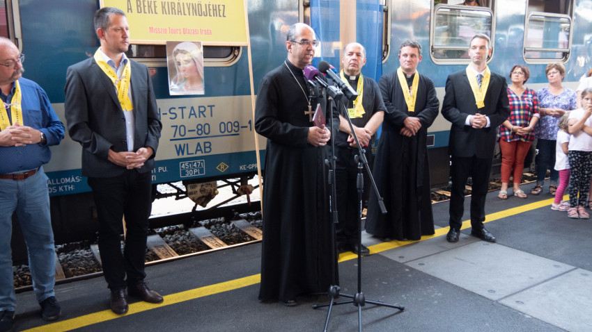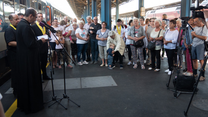 A szerelvényt a 2020-ban rendezendő Nemzetközi Eucharisztikus Kongresszus tiszteletére felmatricázott mozdony húzza. A fedélzeten utazó közel hatszáz zarándokot Székely János szombathelyi megyéspüspök, a zarándoklat lelkivezetője; Fülöp Attila szociális ügyekért felelős államtitkár; valamint Budai László, a Misszió Tours ügyvezetője köszöntötte a Keleti pályaudvaron.