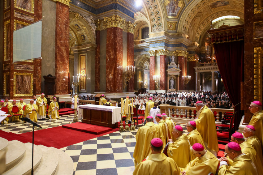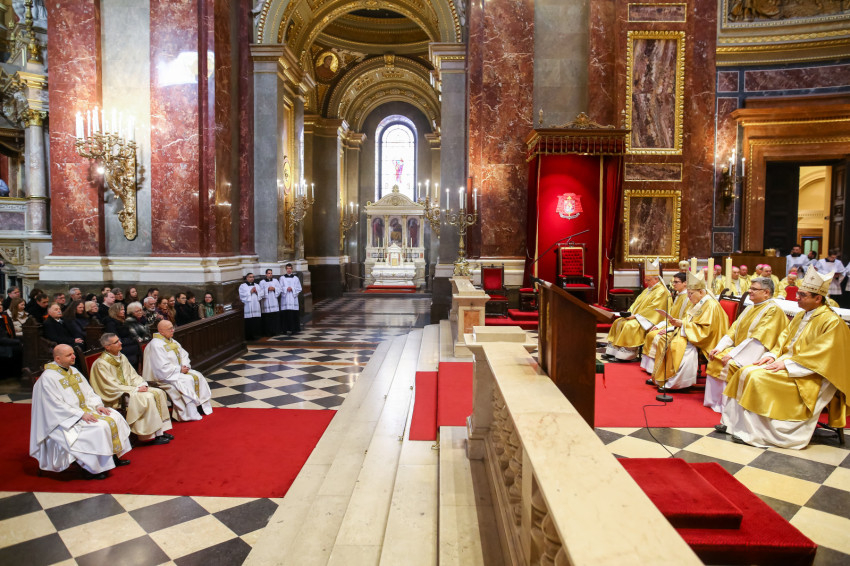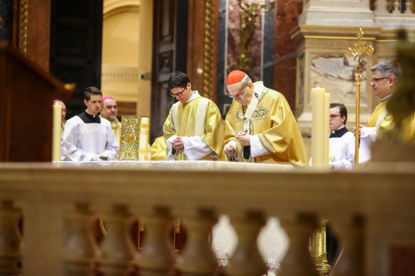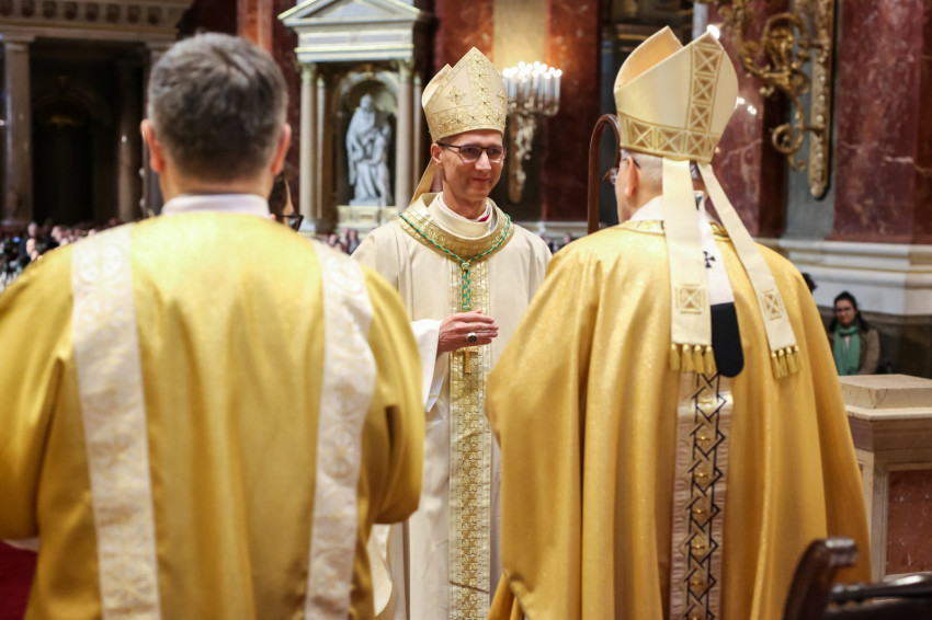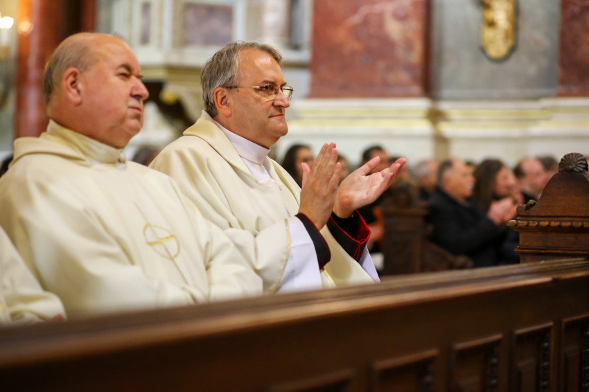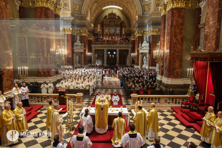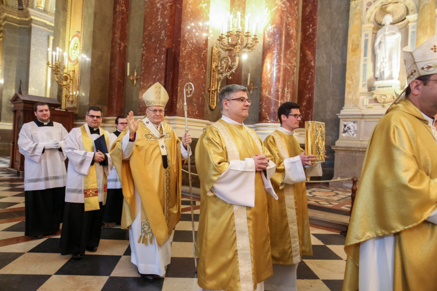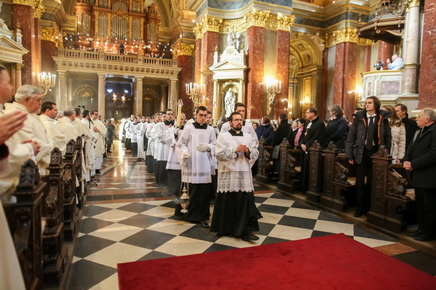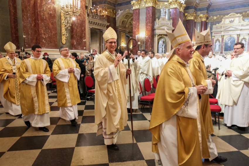 Még néhány köszönet. Hálásan köszönöm a liturgiában közreműködők készületét, az asszisztáló növendékpapság figyelmét, a kórusok – a bazilikáé és az egyetemi templomé – illetve a szkóla odaadó működését. Köszönöm az érseki hivatal dolgozóinak, hogy olyan nagy segítségemre voltak a mai ünnep előkészítésében és lebonyolításában.