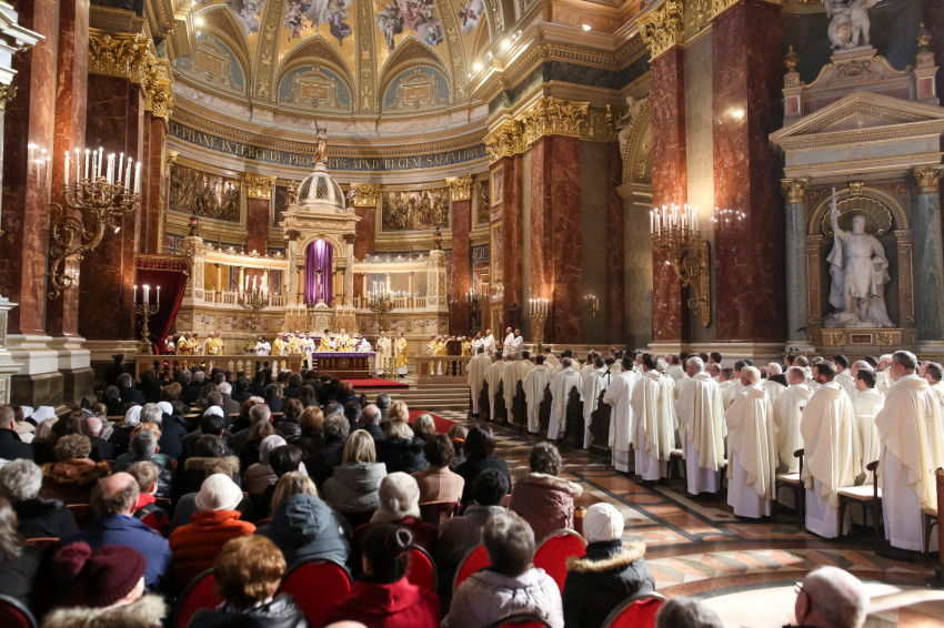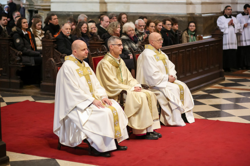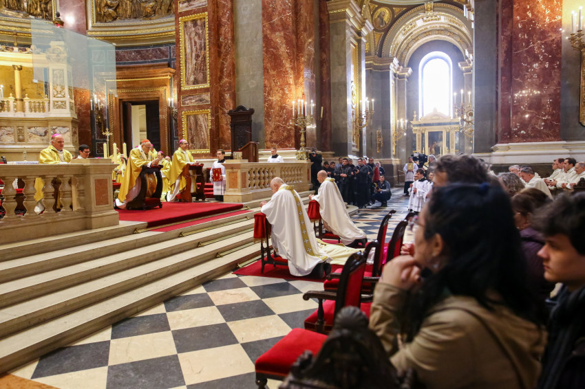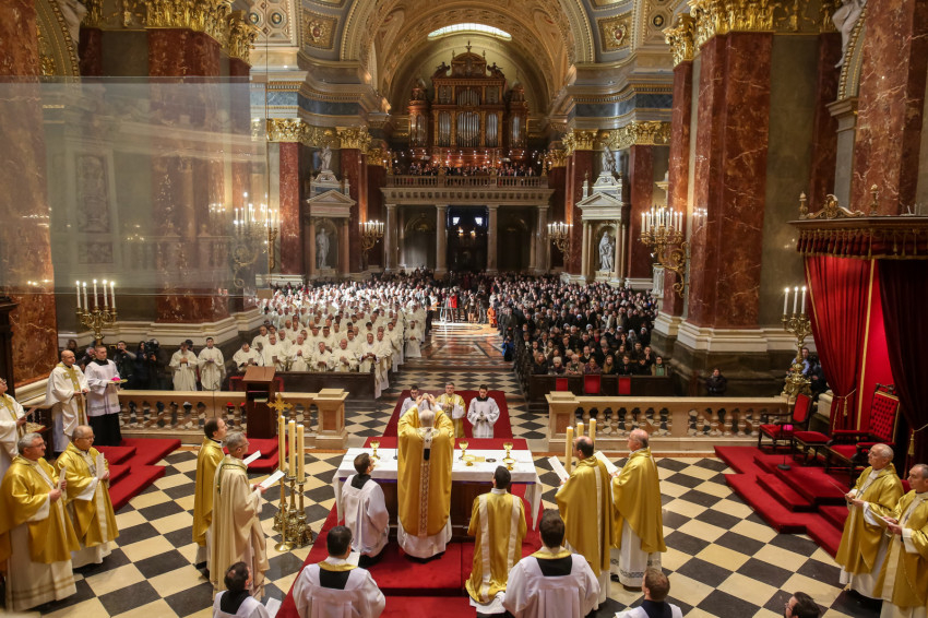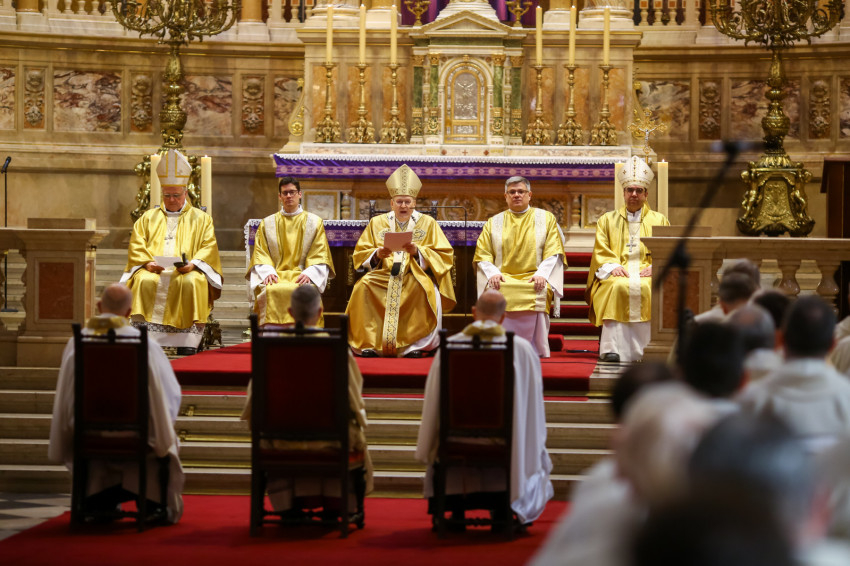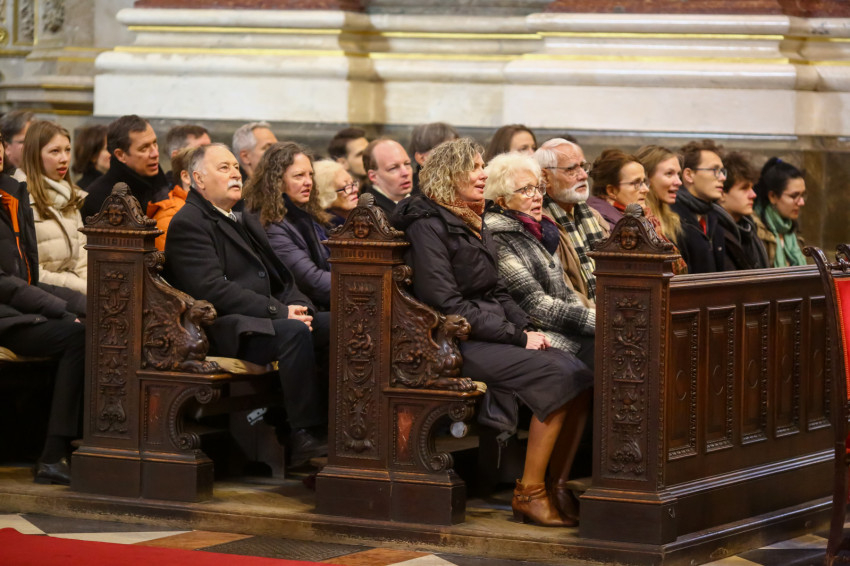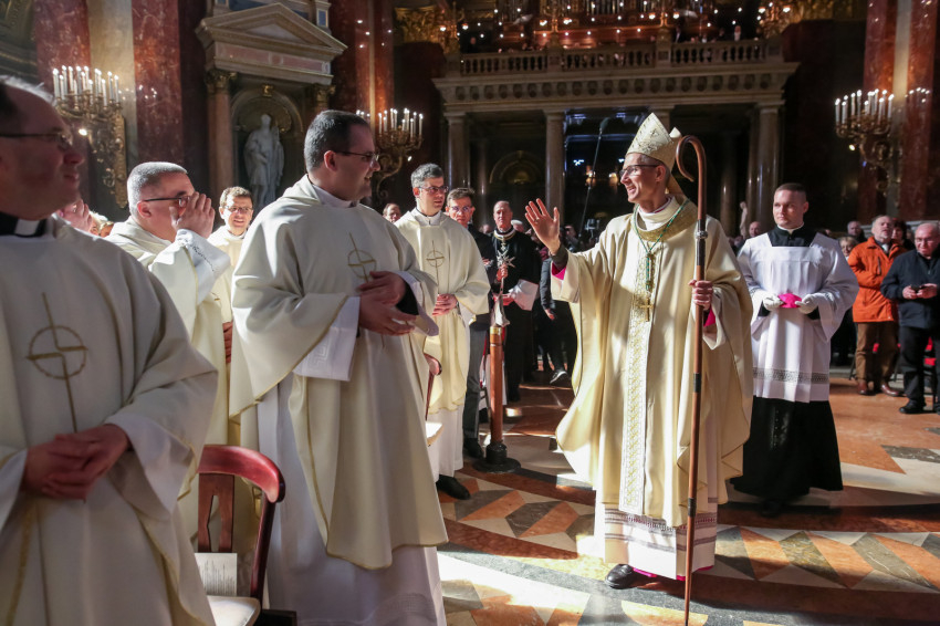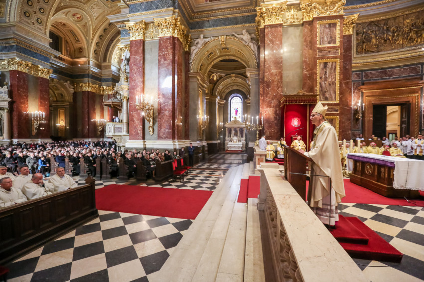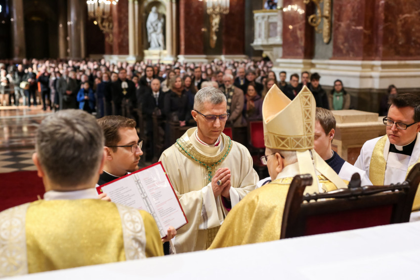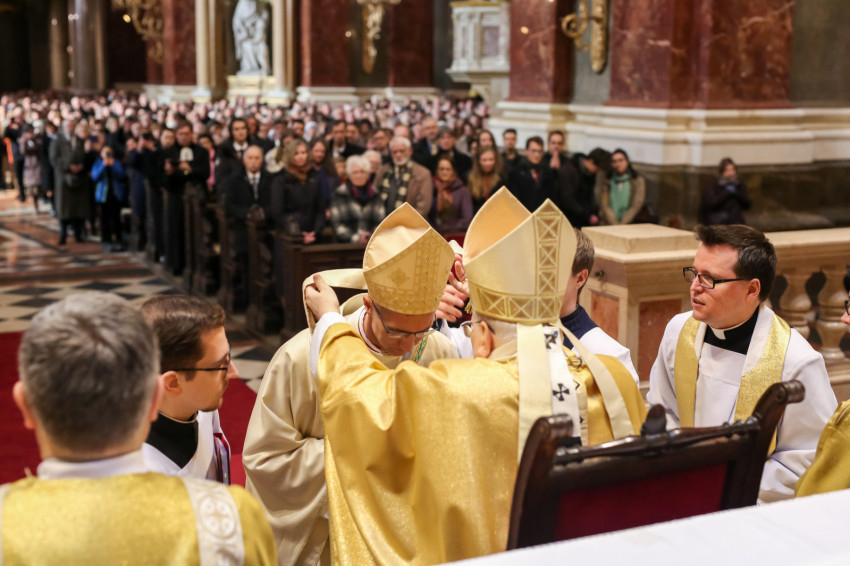 Még néhány köszönet. Hálásan köszönöm a liturgiában közreműködők készületét, az asszisztáló növendékpapság figyelmét, a kórusok – a bazilikáé és az egyetemi templomé – illetve a szkóla odaadó működését. Köszönöm az érseki hivatal dolgozóinak, hogy olyan nagy segítségemre voltak a mai ünnep előkészítésében és lebonyolításában.
