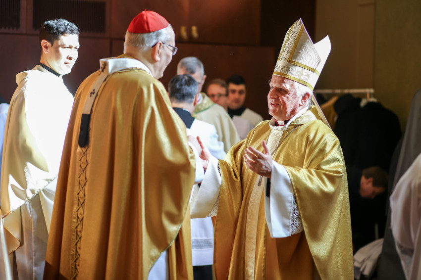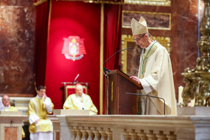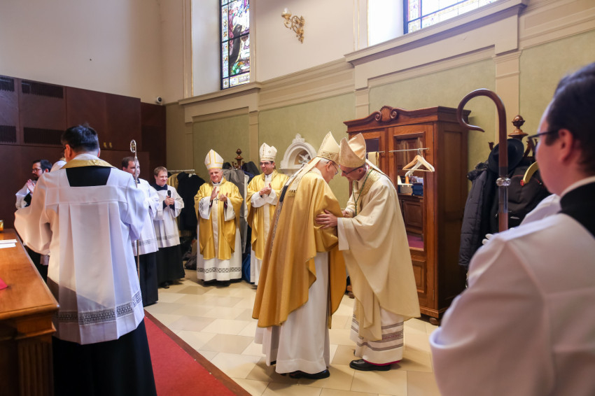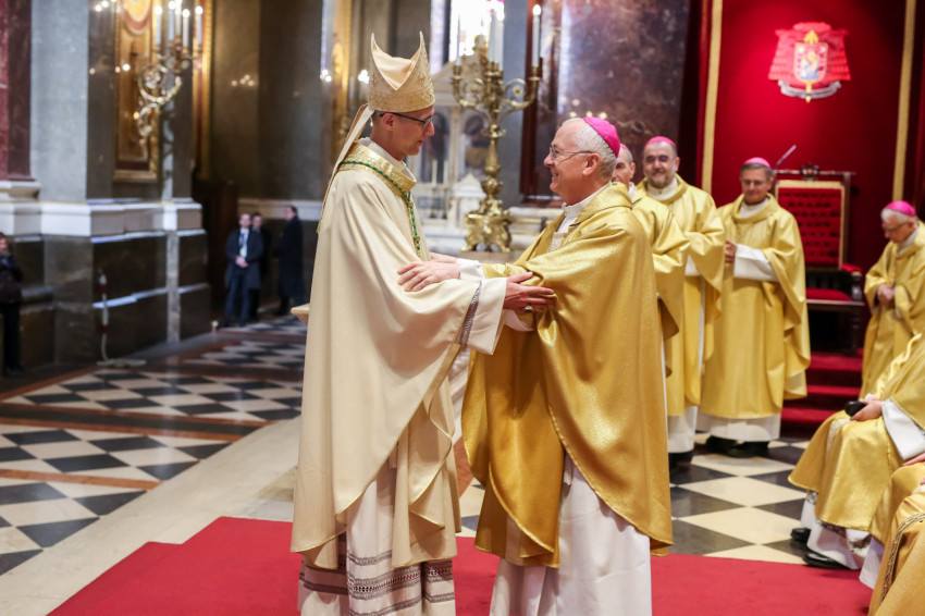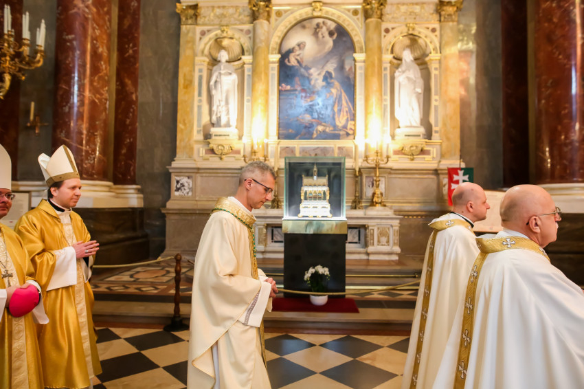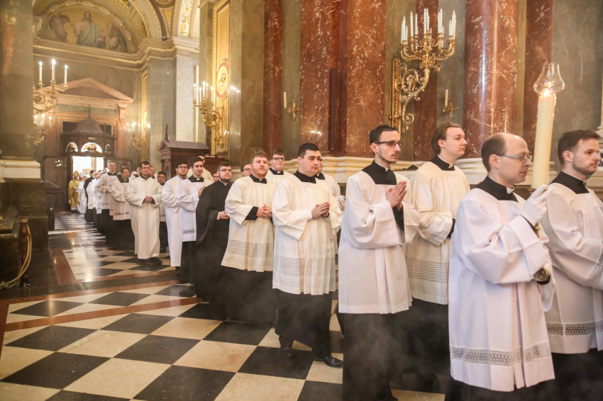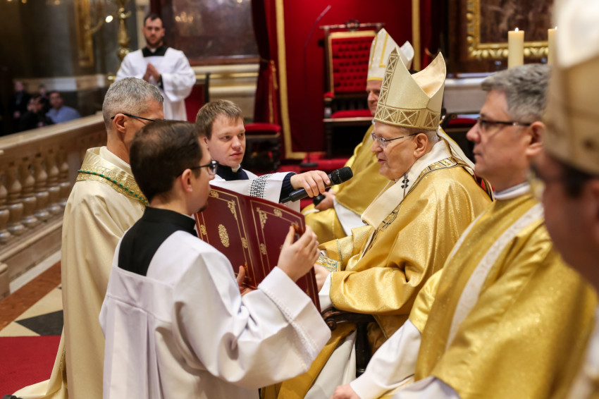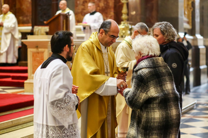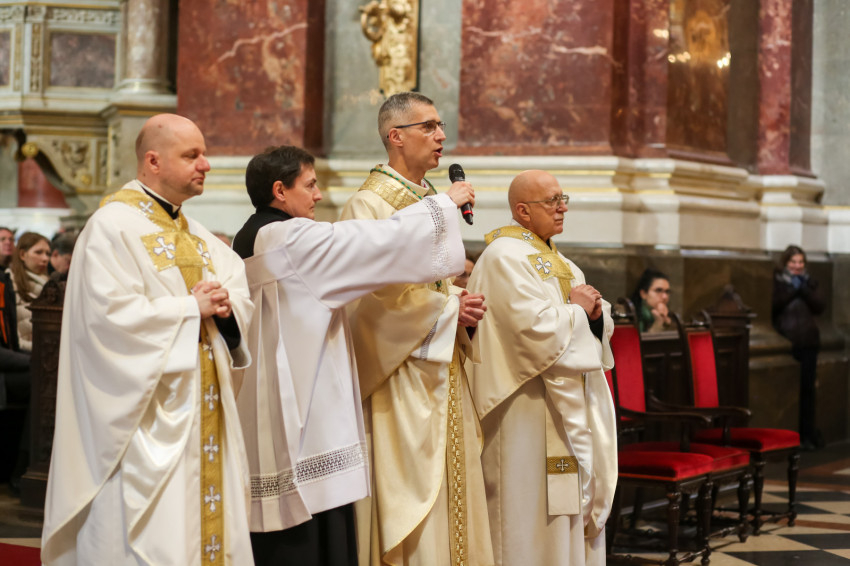 Még néhány köszönet. Hálásan köszönöm a liturgiában közreműködők készületét, az asszisztáló növendékpapság figyelmét, a kórusok – a bazilikáé és az egyetemi templomé – illetve a szkóla odaadó működését. Köszönöm az érseki hivatal dolgozóinak, hogy olyan nagy segítségemre voltak a mai ünnep előkészítésében és lebonyolításában.