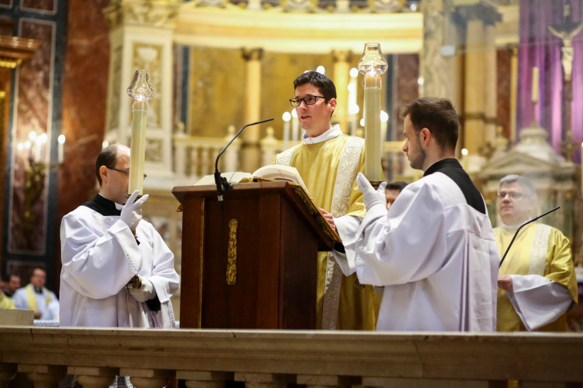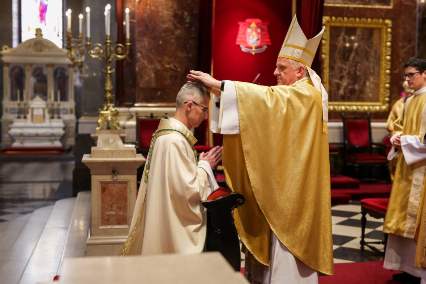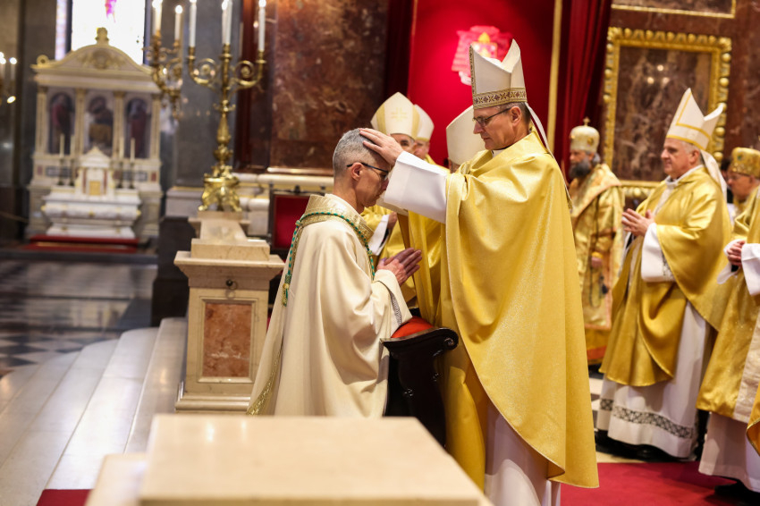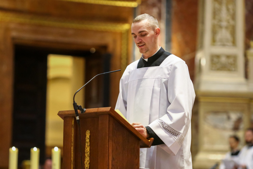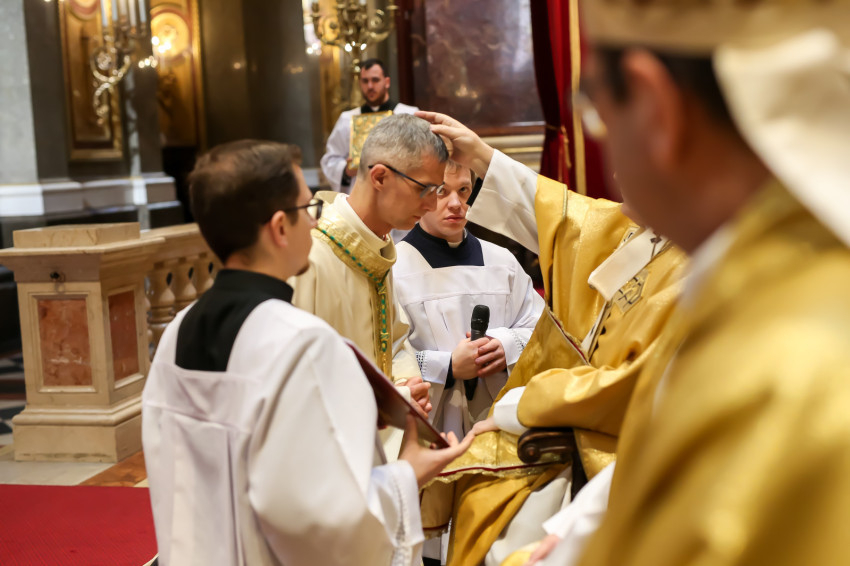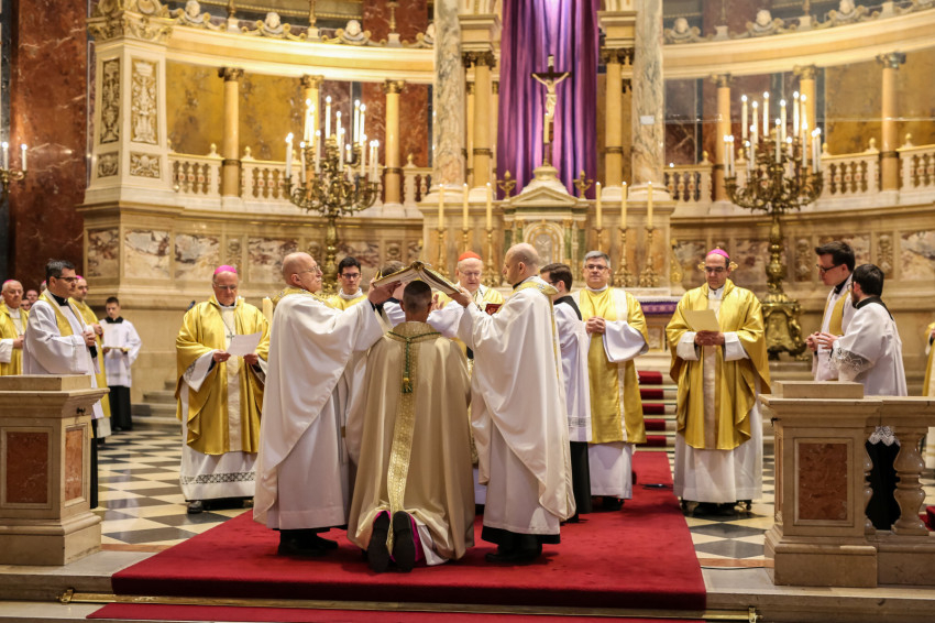 A homília után a jelölt ígérettételével folytatódott a szertartás. Ezt követően a jelenlévők elimádkozták a Mindenszentek litániáját, majd a kézrátétel és a felszentelő ima következett, melynek elimádkozása alatt az evangéliumos könyvet a szentelendő feje fölé helyezte Lovassy Attila, a Központi Papnevelő Intézet prefektusa és Száraz László, a szeminárium spirituálisa.