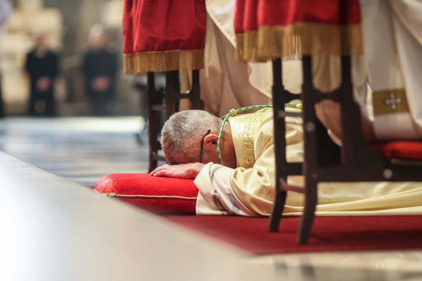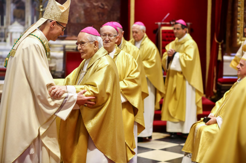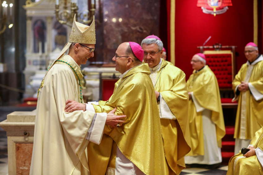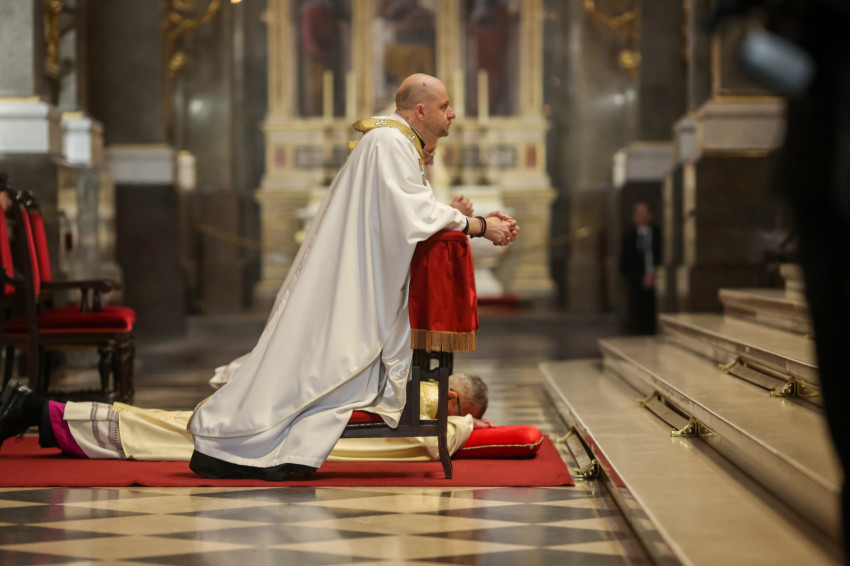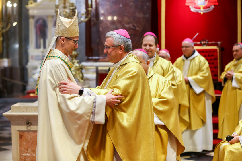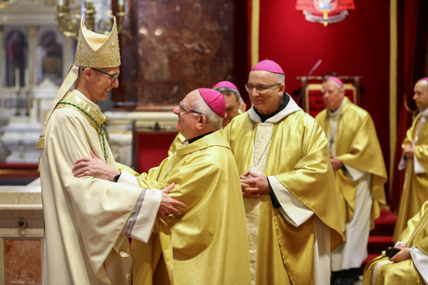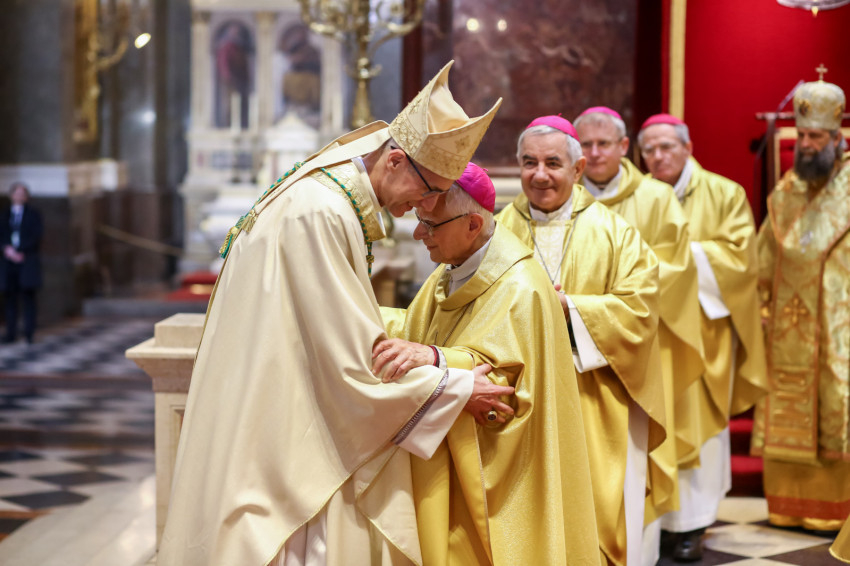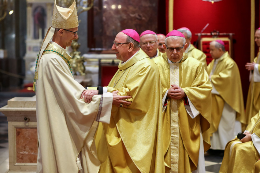 A szentmise végén Veres András győri megyéspüspök, az MKPK elnöke a testület nevében köszöntötte az új tagot. Mint elmondta, amikor a püspök leborul az oltár előtt, kifejezi Isten és az Egyház iránti odaadását.