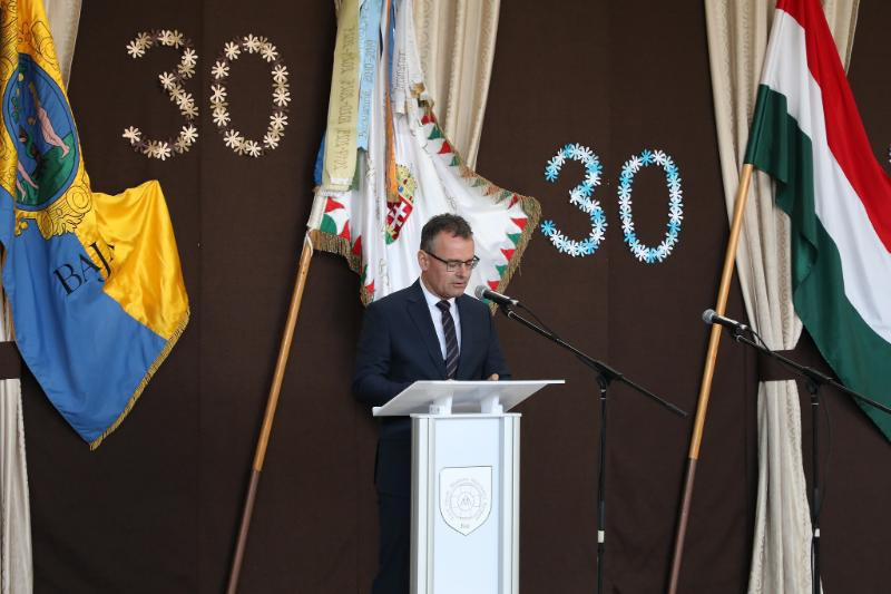 Végül Hajdók Róbert főigazgató arról beszélt, hogy a pályája során végigkísérte az elmúlt 30 év eseményeit, ugyanis az alapítók – köztük a néhai Tarján Levente igazgató, Baja díszpolgára – vették fel az intézménybe mérnöktanárnak. Az intézmény vezetője elmondta, hogyha a 30 esztendőre az iskola 156 évének történelmi távlatából tekint, akkor rövid időszaknak látszik; de saját naptára felől nézve életének legnagyobb időszakaként éli meg.