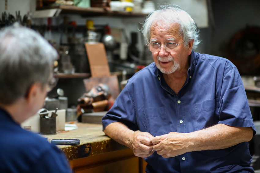 – A tűzecsetet, azaz a hegesztőpisztolyt a kezemben tartva ámulattal figyelem, hogy a tűz, míg lángjával az anyagot elemészti, az elmúlás szinte minden fázisában maradandót alkot, csak meg kell örökíteni a pillanat varázsát. Ellestem, hosszan tartó keserves munkával megtanultam, hogy az adott pillanatban a tűznek azt tudjam parancsolni: „eddig és ne tovább”. S akkor ott áll előttem a hirtelen ellobbant tűz utolsó lángnyelveivel és azok hőjével mint utolsó „ecsetvonásokkal” megfestett, megalkotott mű: a szoborkép. A fém, a vörösréz a kihívóm. Nemes harcot vívtam és vívok vele, hol én győzök, hol ő, de minden győzelmemet